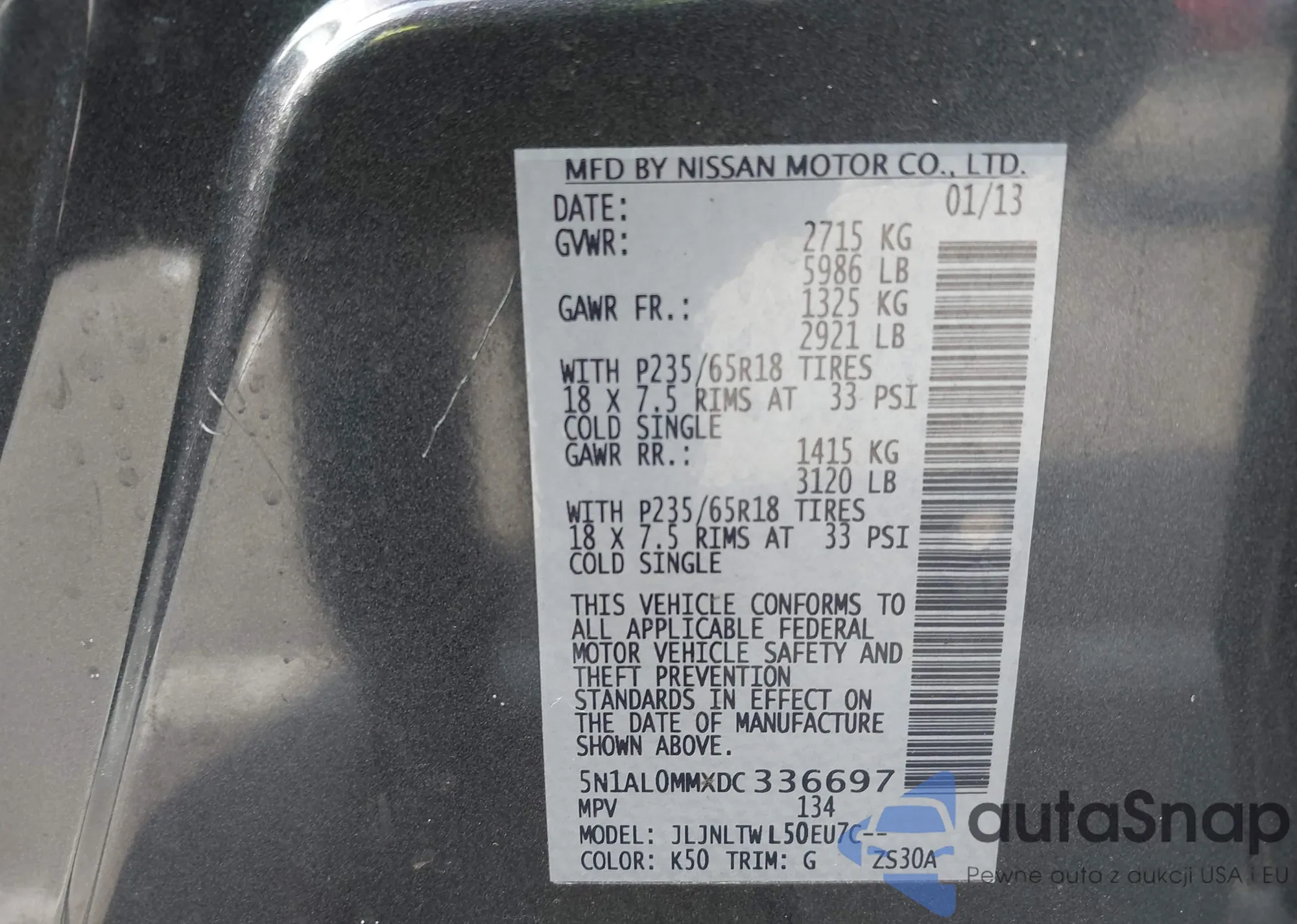 • VIN 5N1AL0MMXDC336697