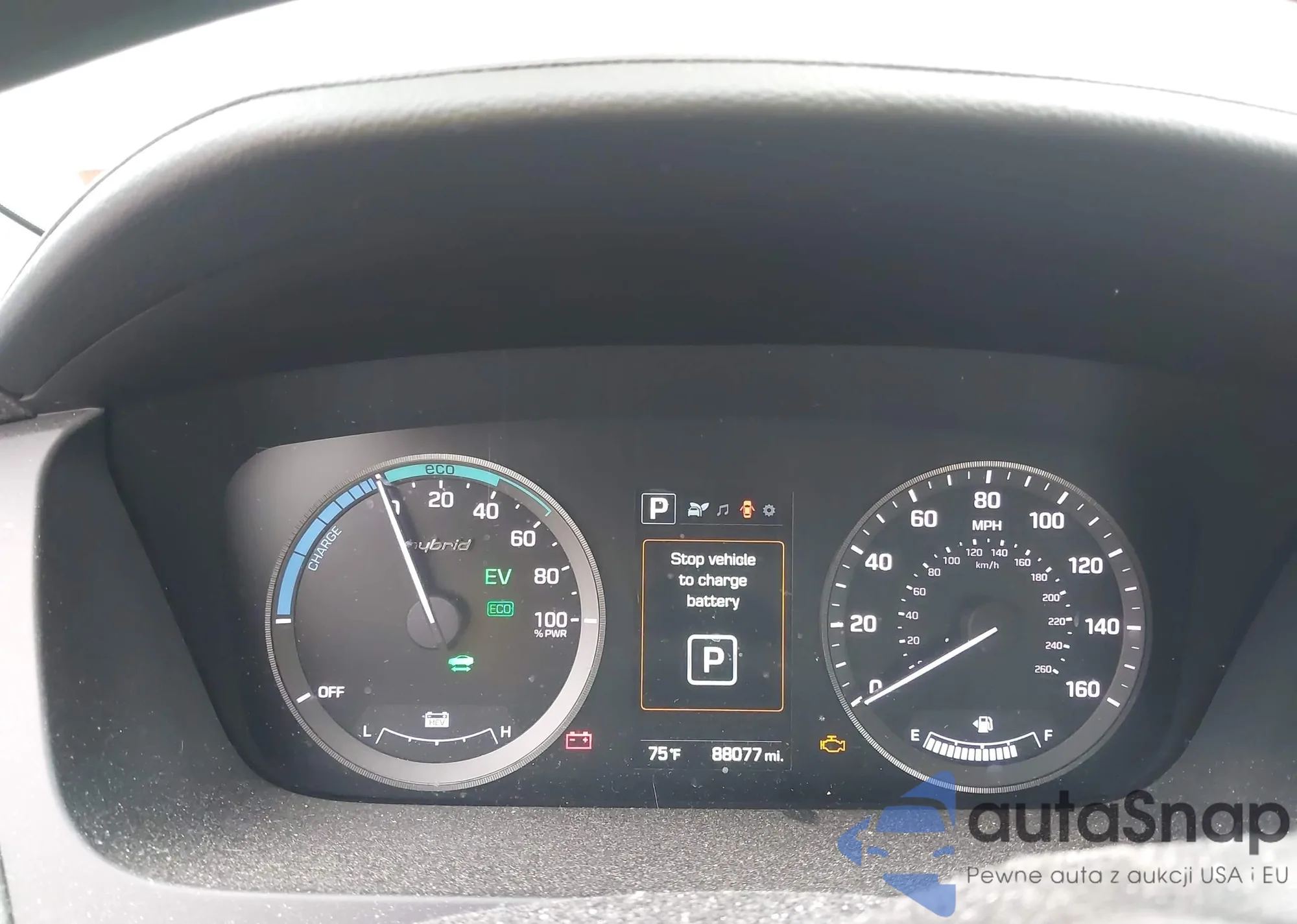 2016 Hyundai Sonata Hybrid Se z USA, uszkodzony, nr VIN KMHE24L16GA025481