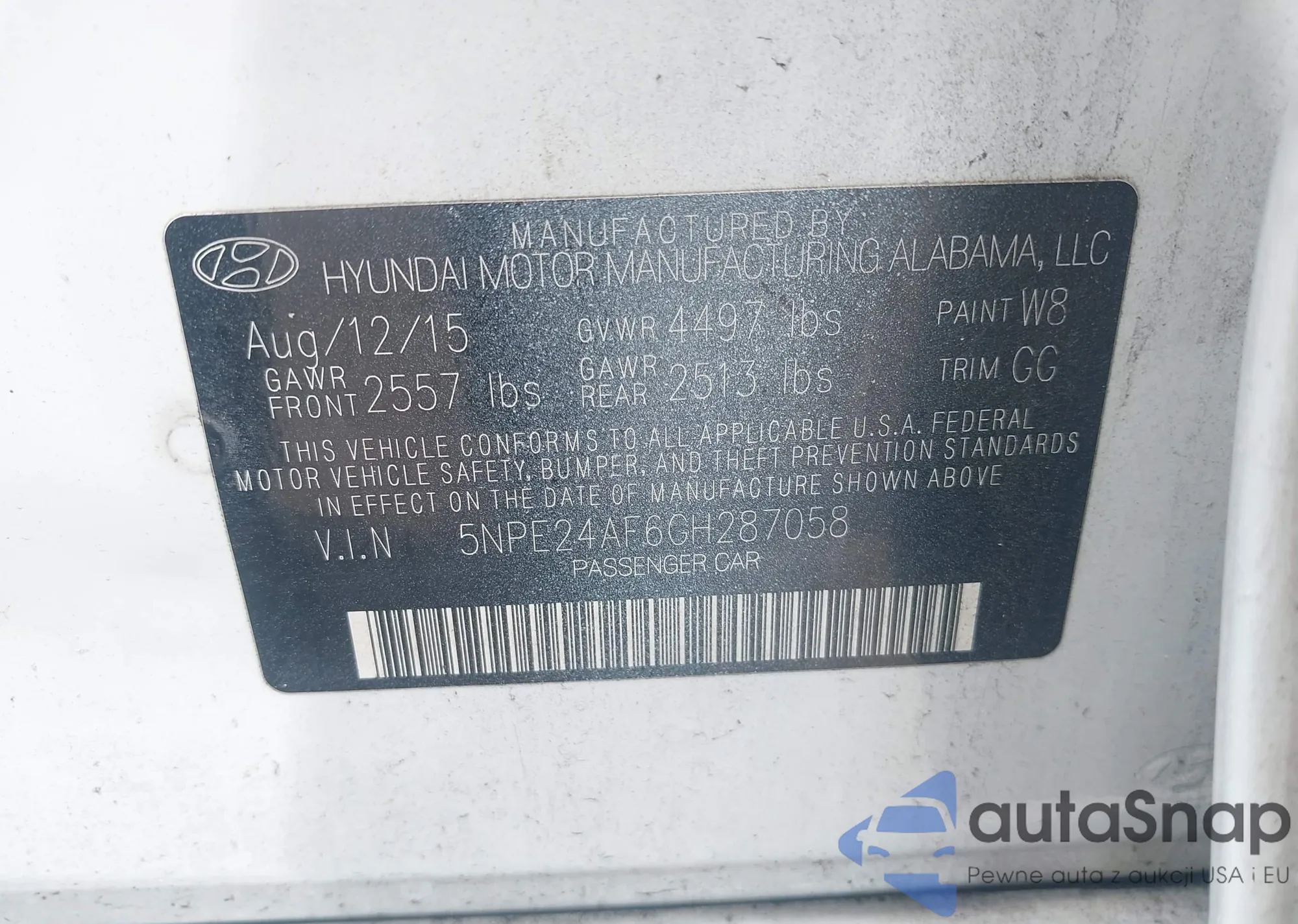LOT: 42907315 VIN: KMHE24L16GA025481