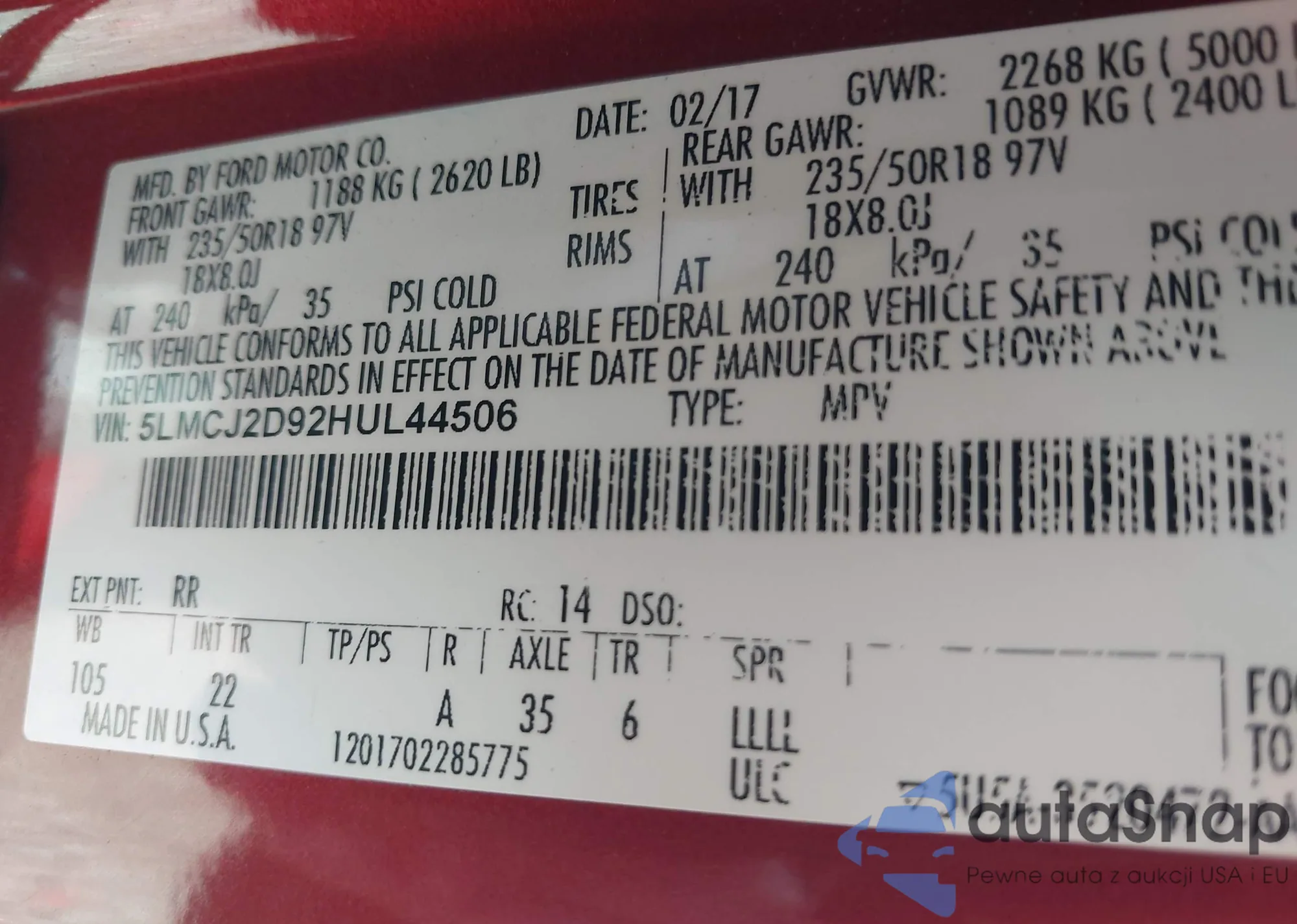 • VIN 5LMCJ2D92HUL44506