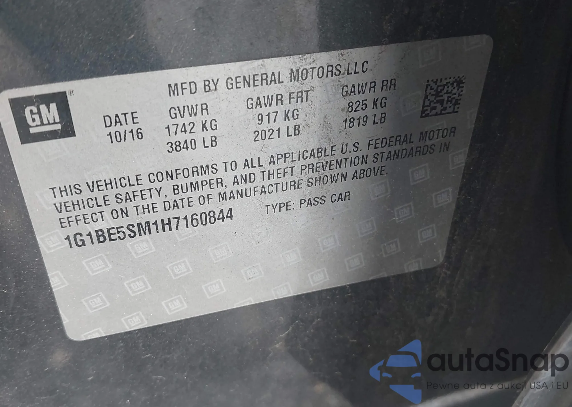 LOT: 42451171 VIN: 1G1BE5SM1H7160844