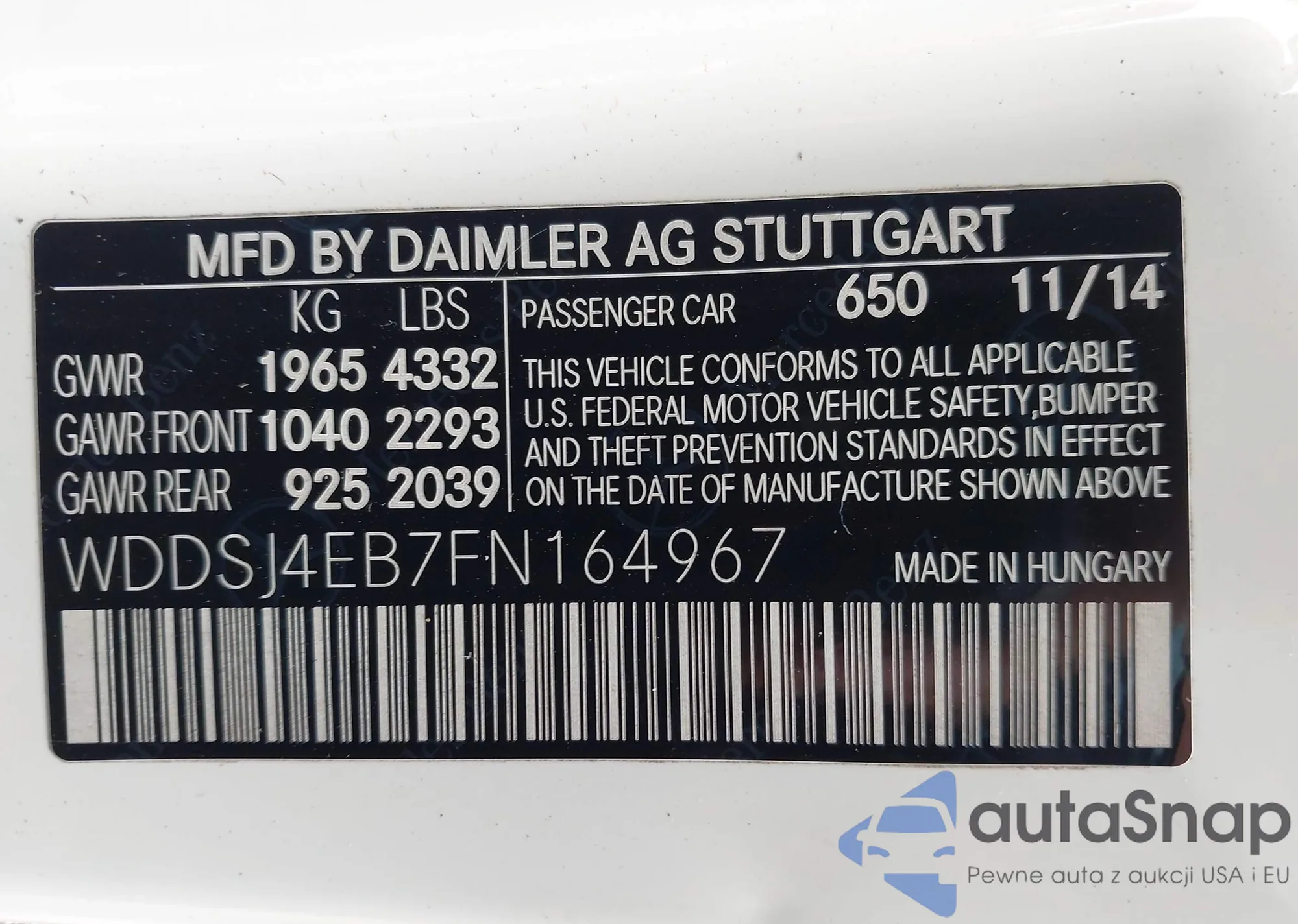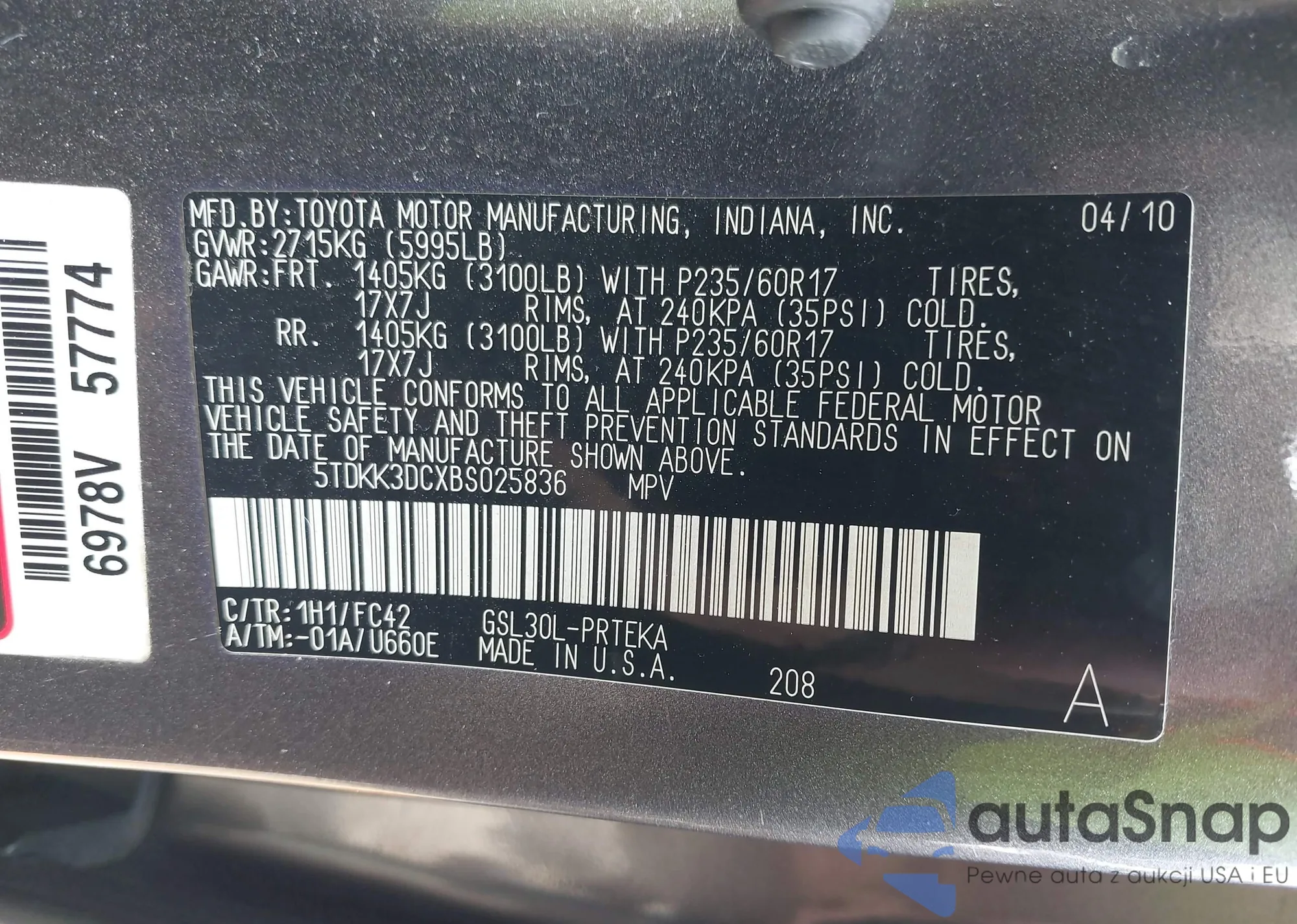 • VIN 5XYKTDA75FG659696