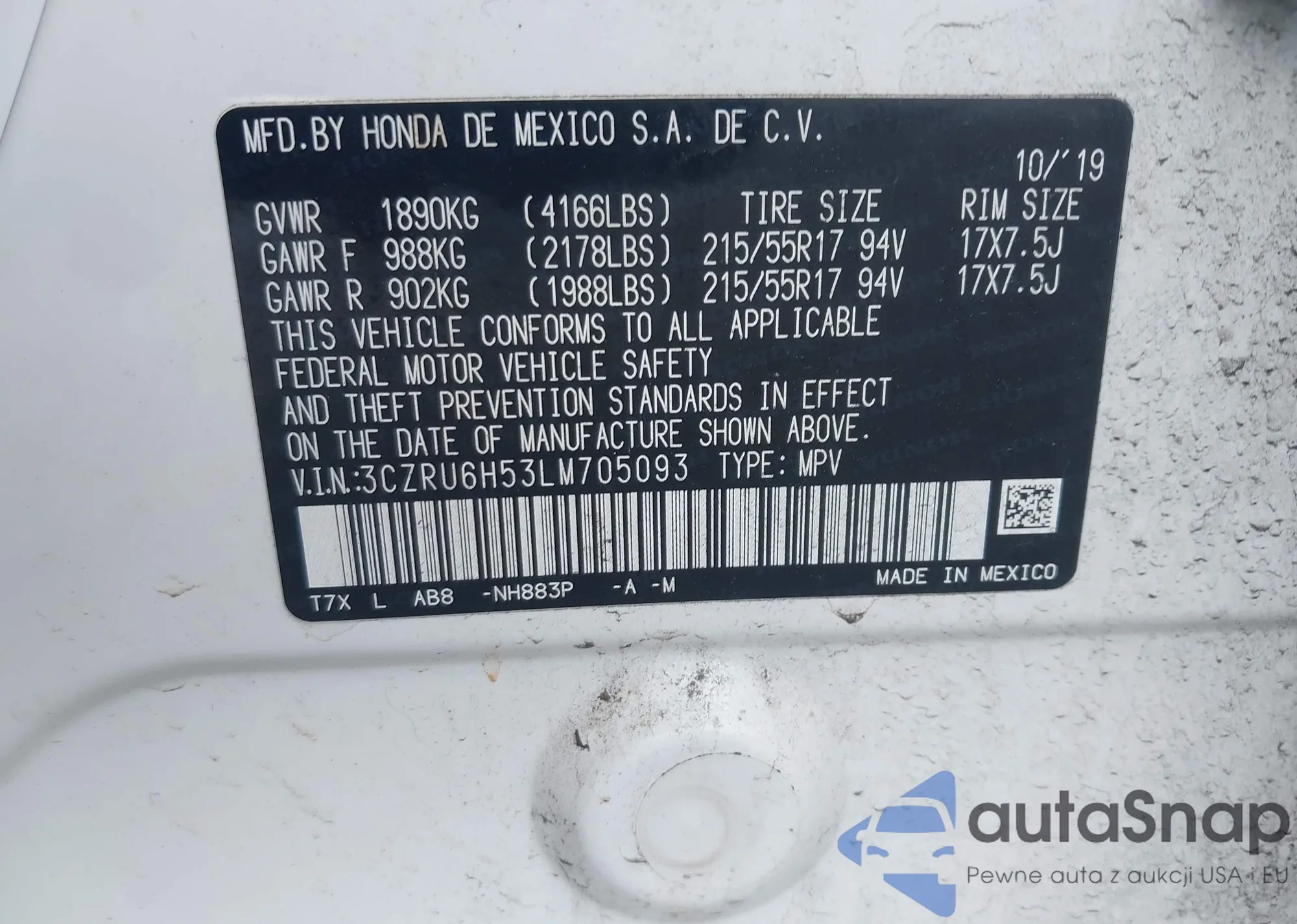 • VIN 3CZRU6H53LM705093