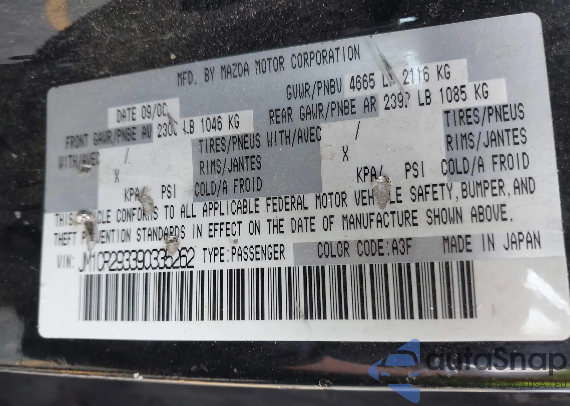 • VIN 1HGCP2F3XAA064534