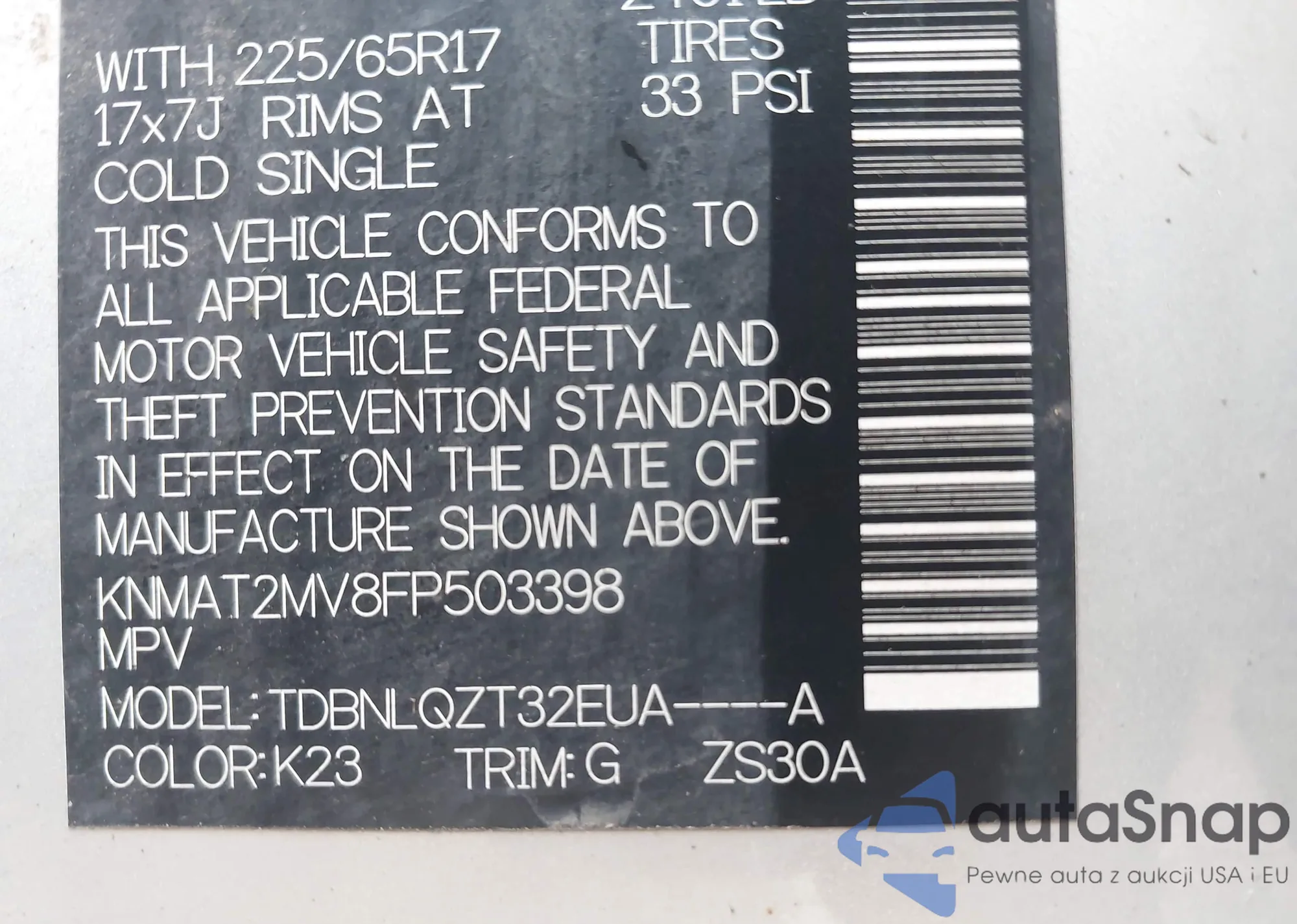 LOT: 42806508 VIN: KMHDH4AE6FU351035