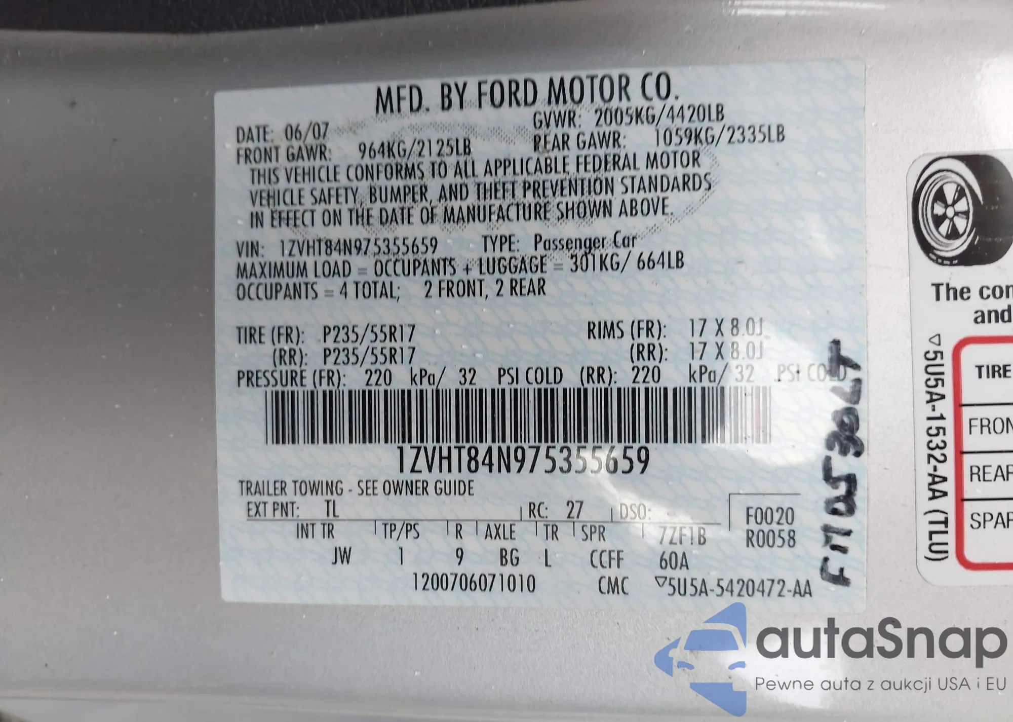 • VIN 1ZVHT84N975355659