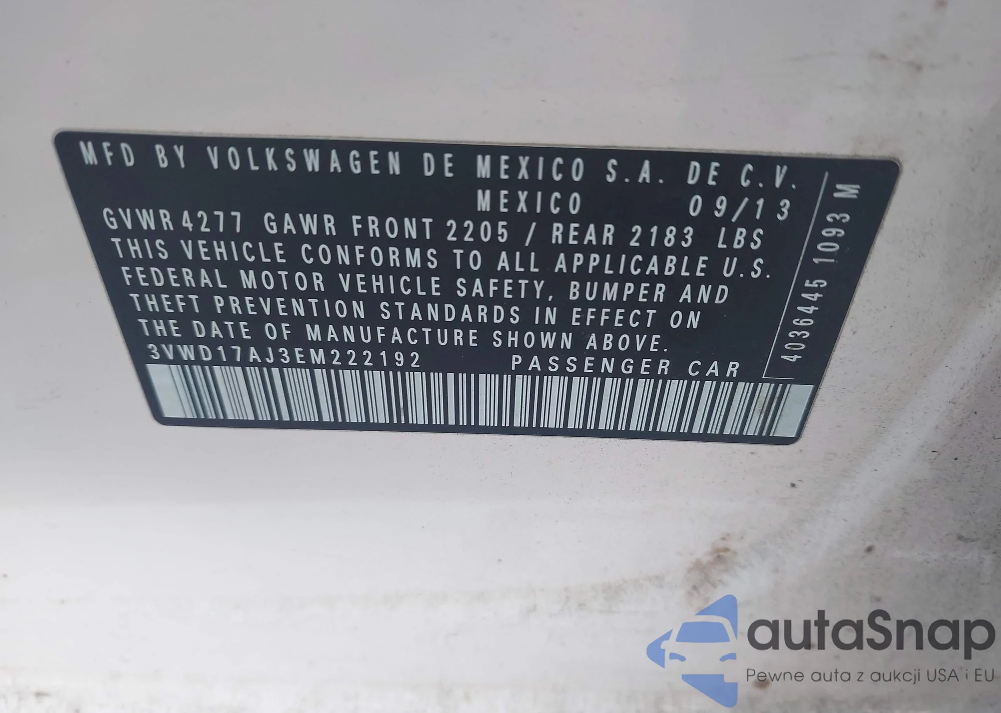 • VIN 3VWD17AJ3EM222192