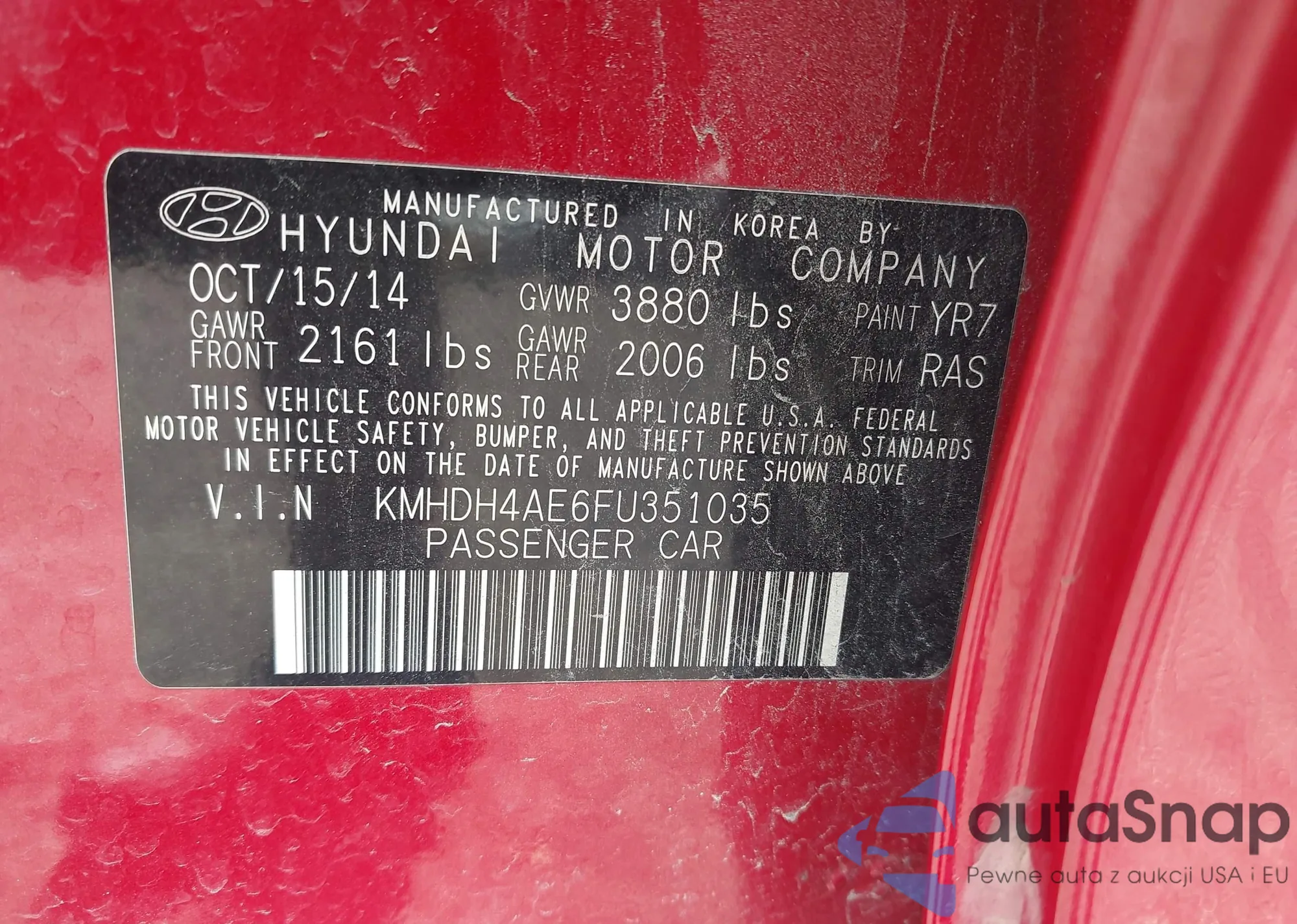 • VIN KMHDH4AE6FU351035