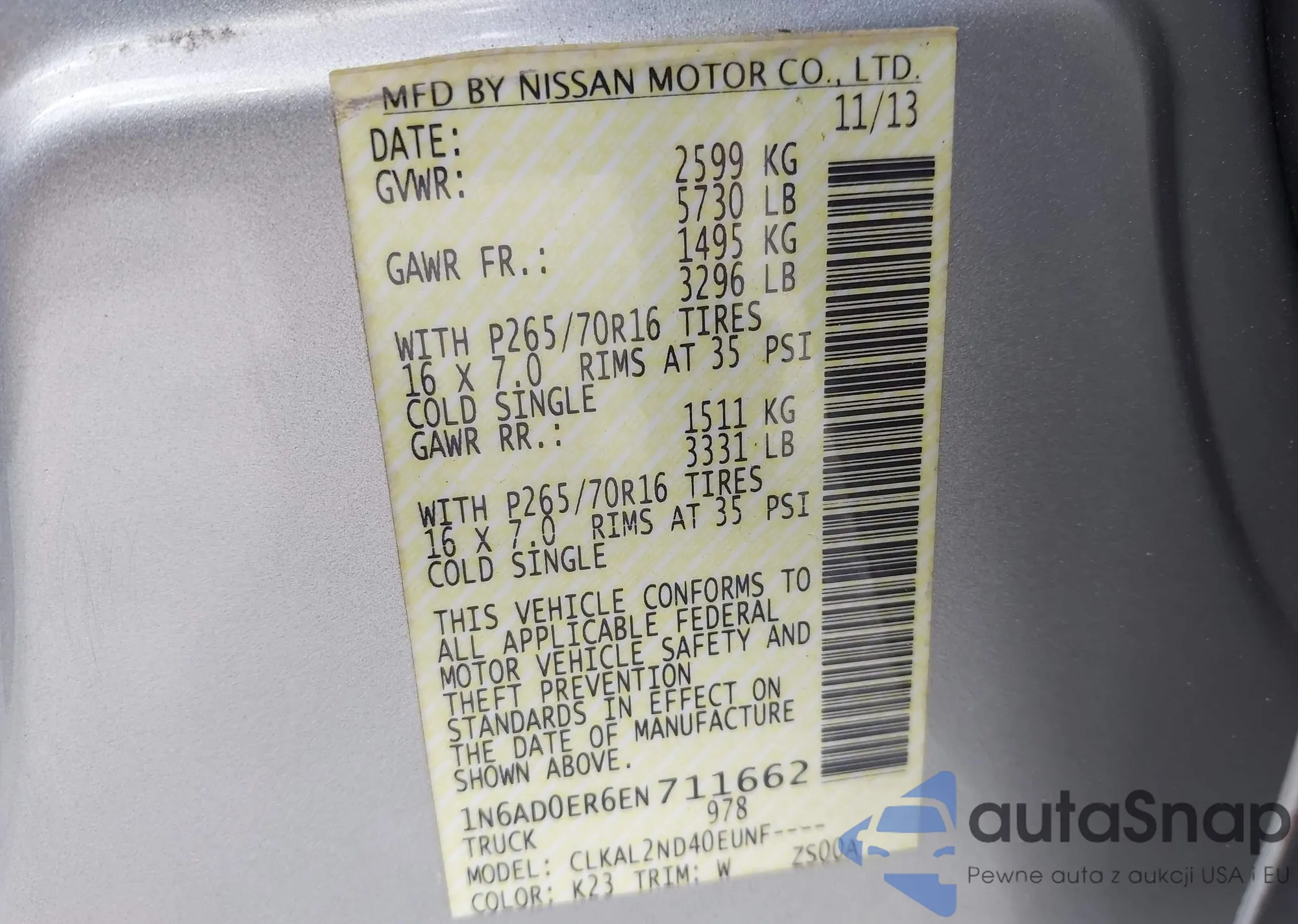 • VIN 1N6AD0ER6EN711662