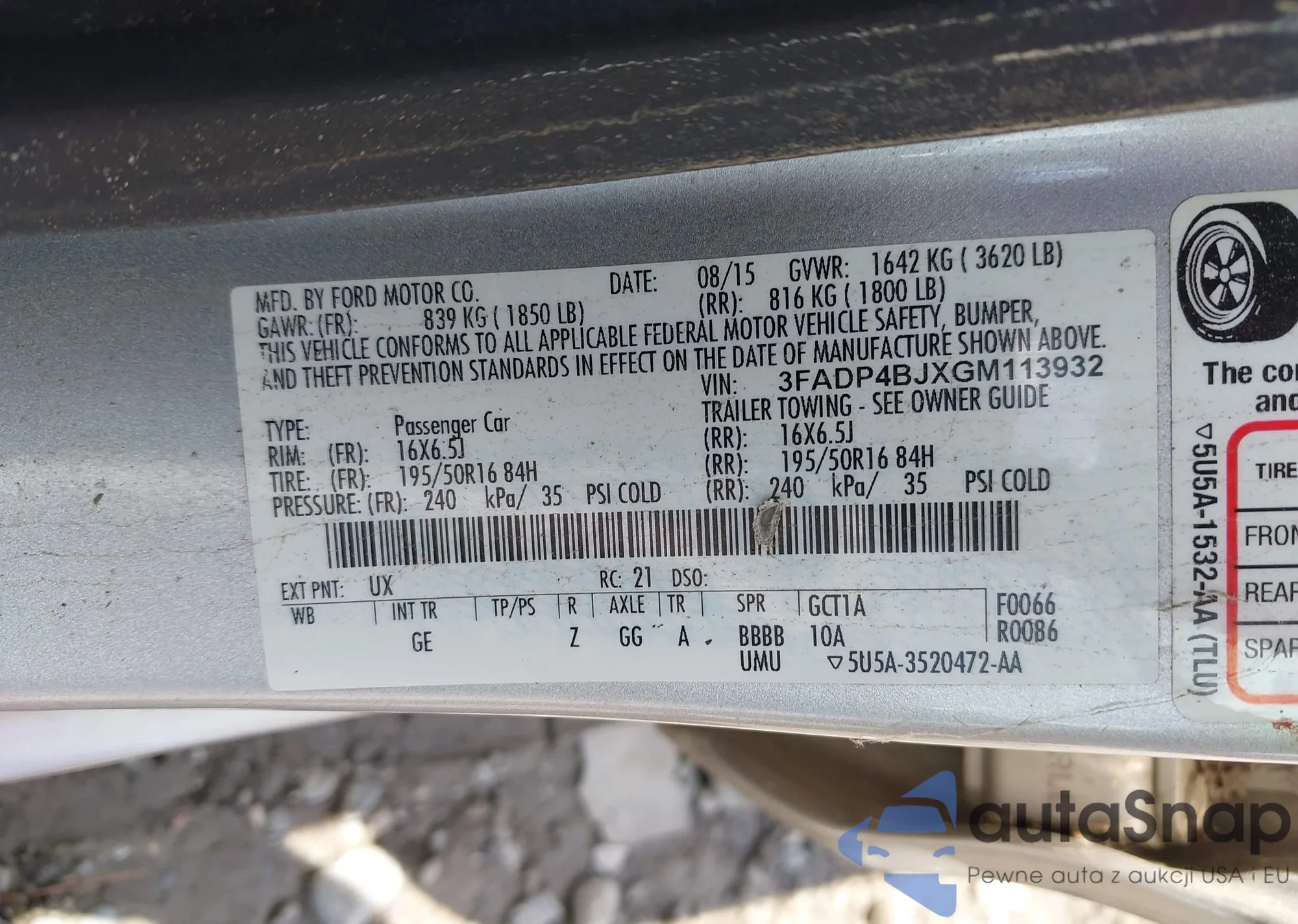 • VIN 3FADP4BJXGM113932