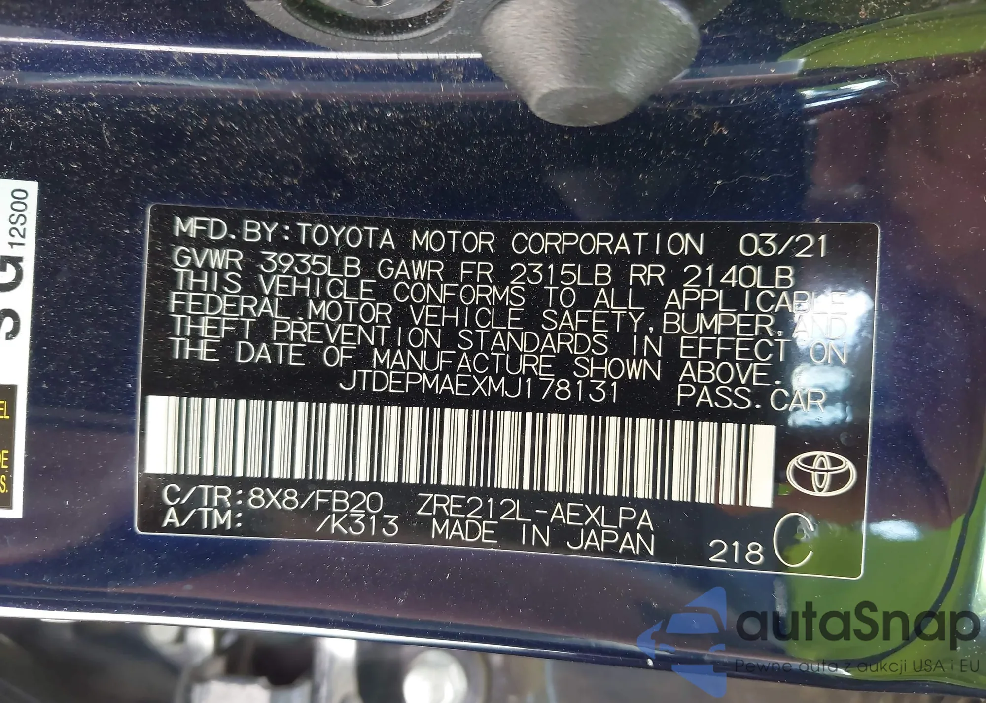 LOT: 42672547 VIN: 1NXBR32E27Z849814