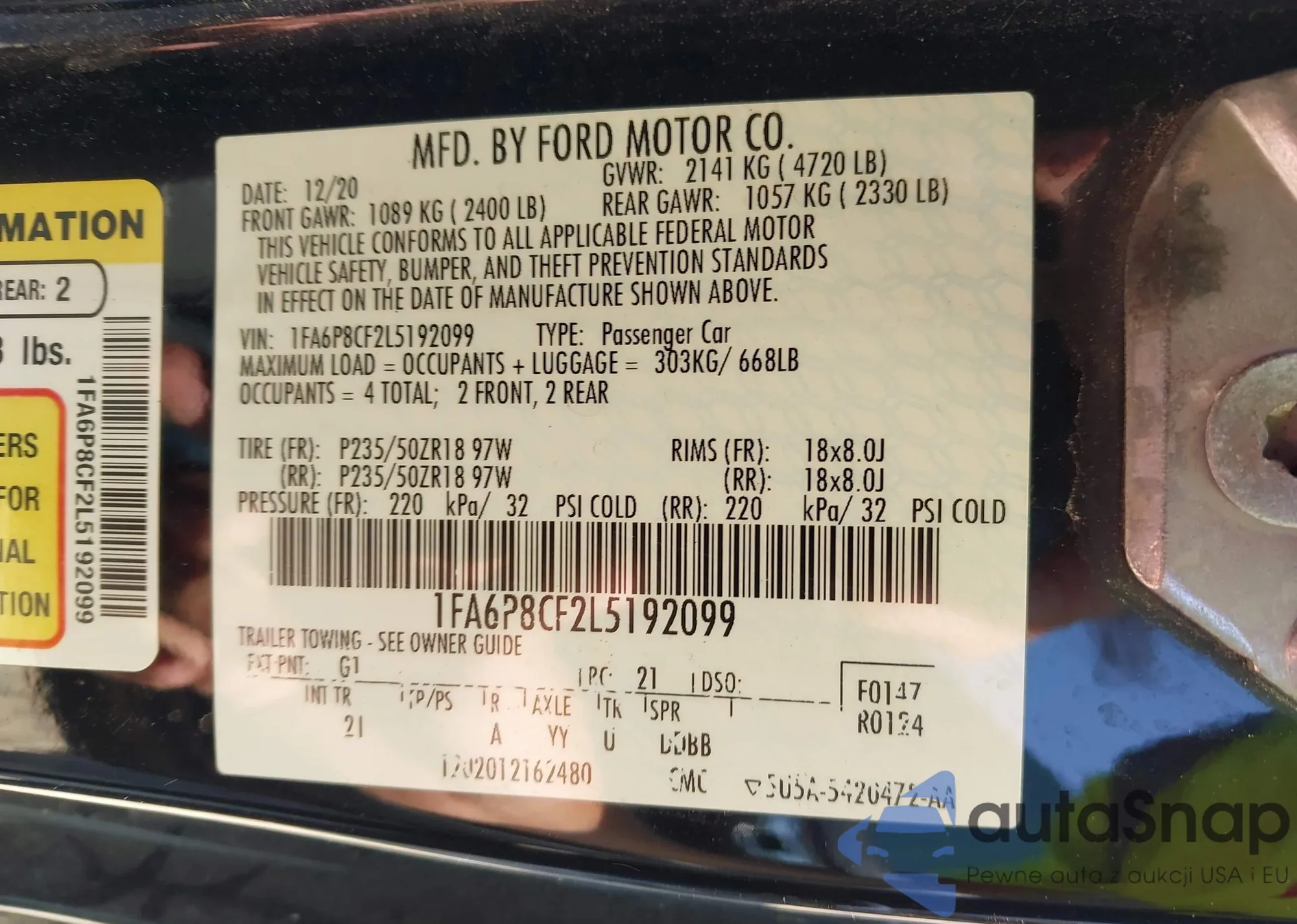 • VIN 1FA6P8CF2L5192099
