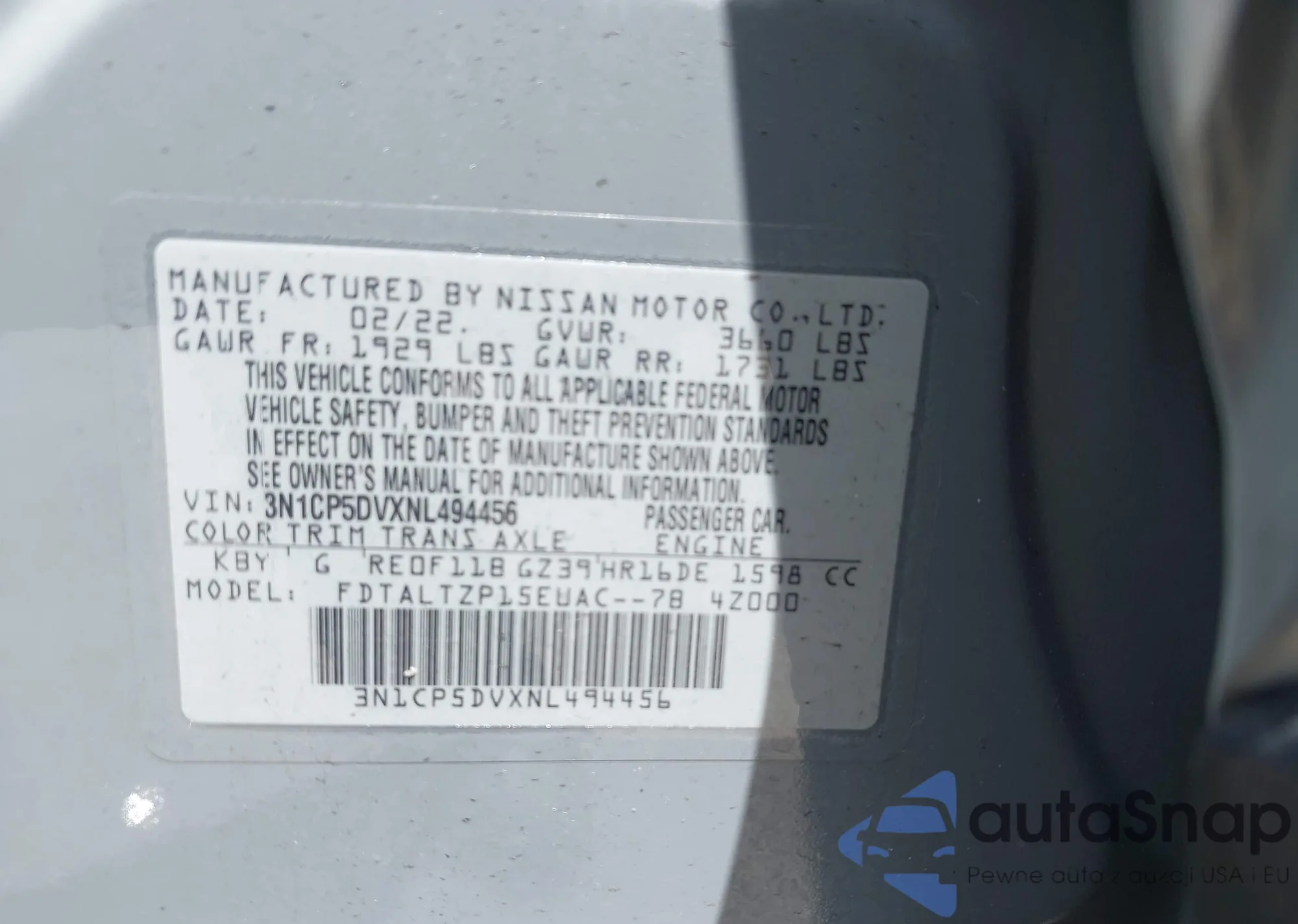 • VIN JTKJF5C76B3005402