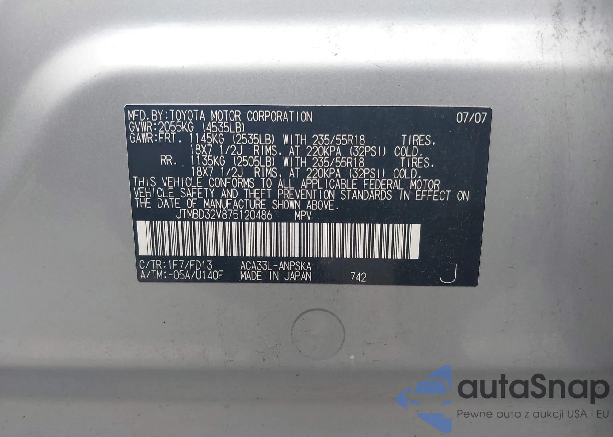 • VIN JTMBD32V875120486