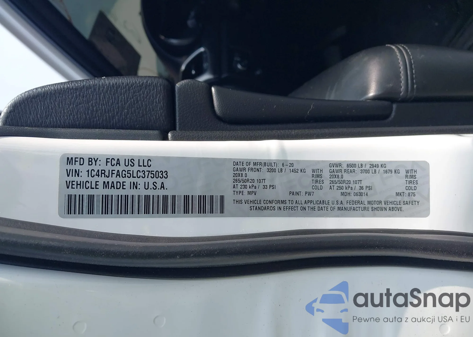 • VIN 1C4RJFAG5LC375033