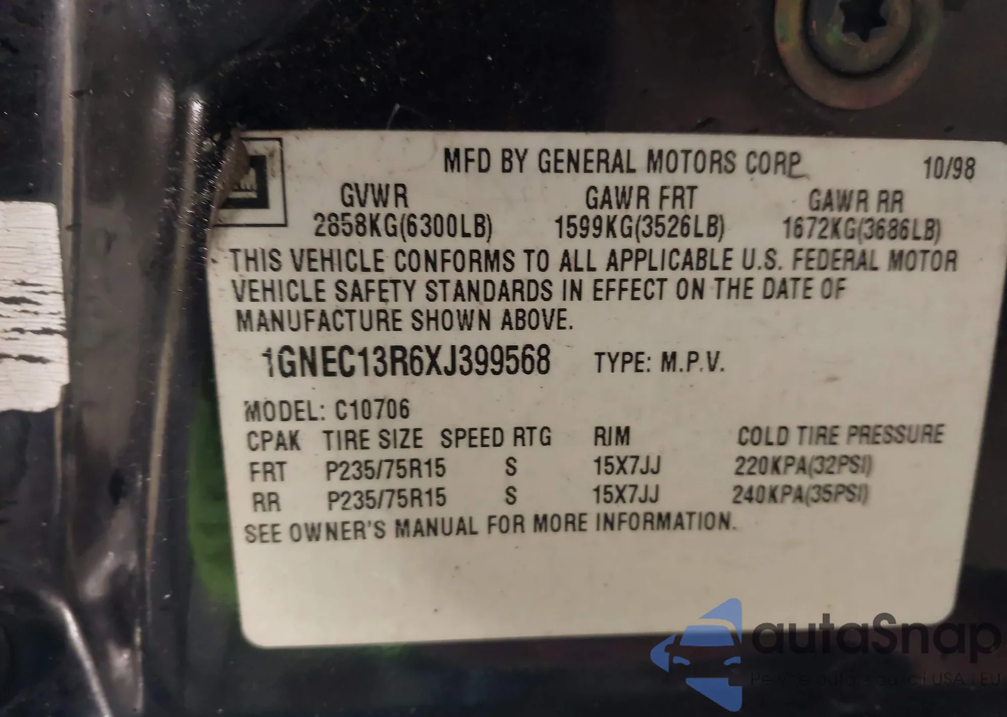 • VIN 1GNEC13R6XJ399568