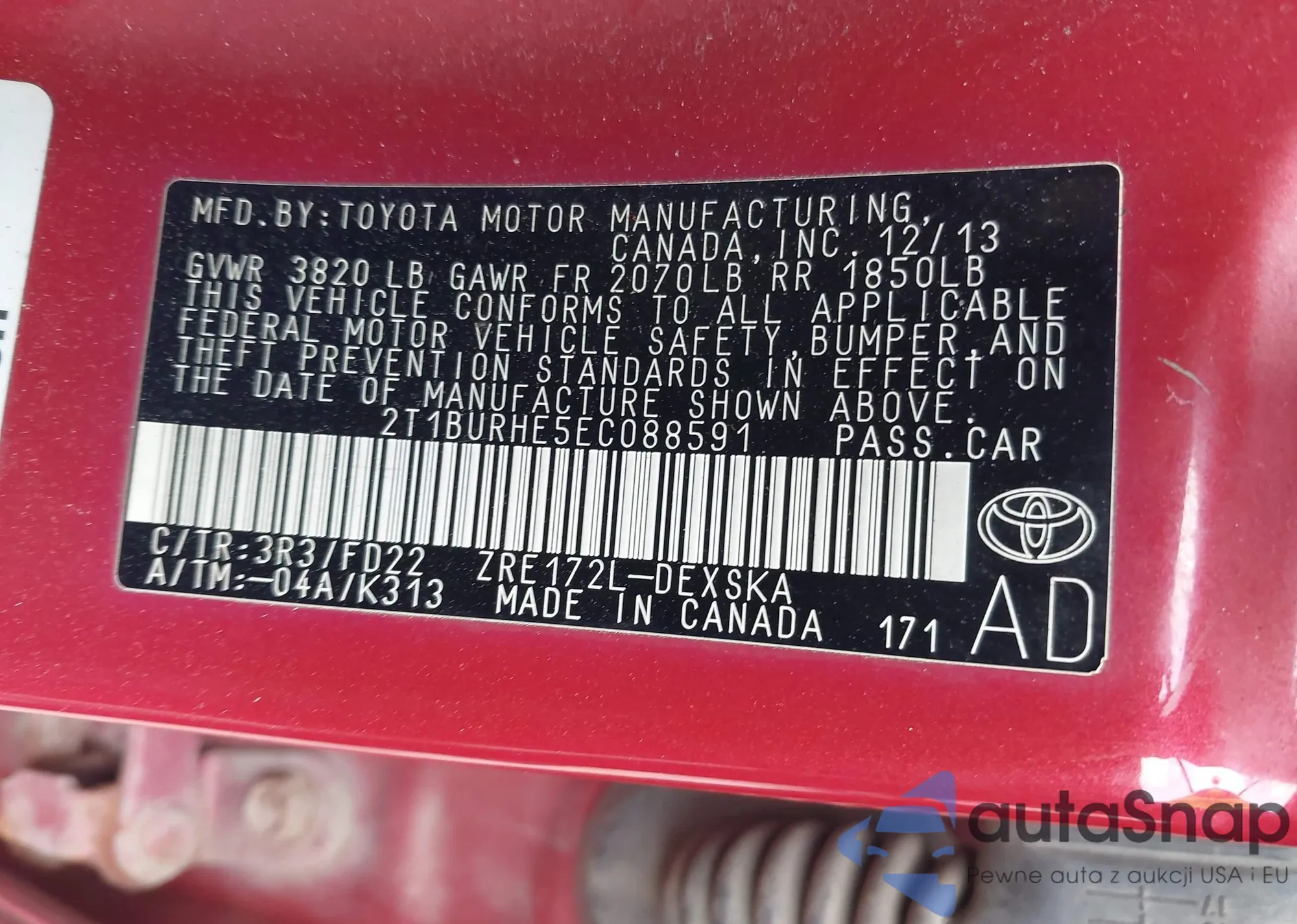 LOT: 42688041 VIN: 2T1BURHE5EC088591