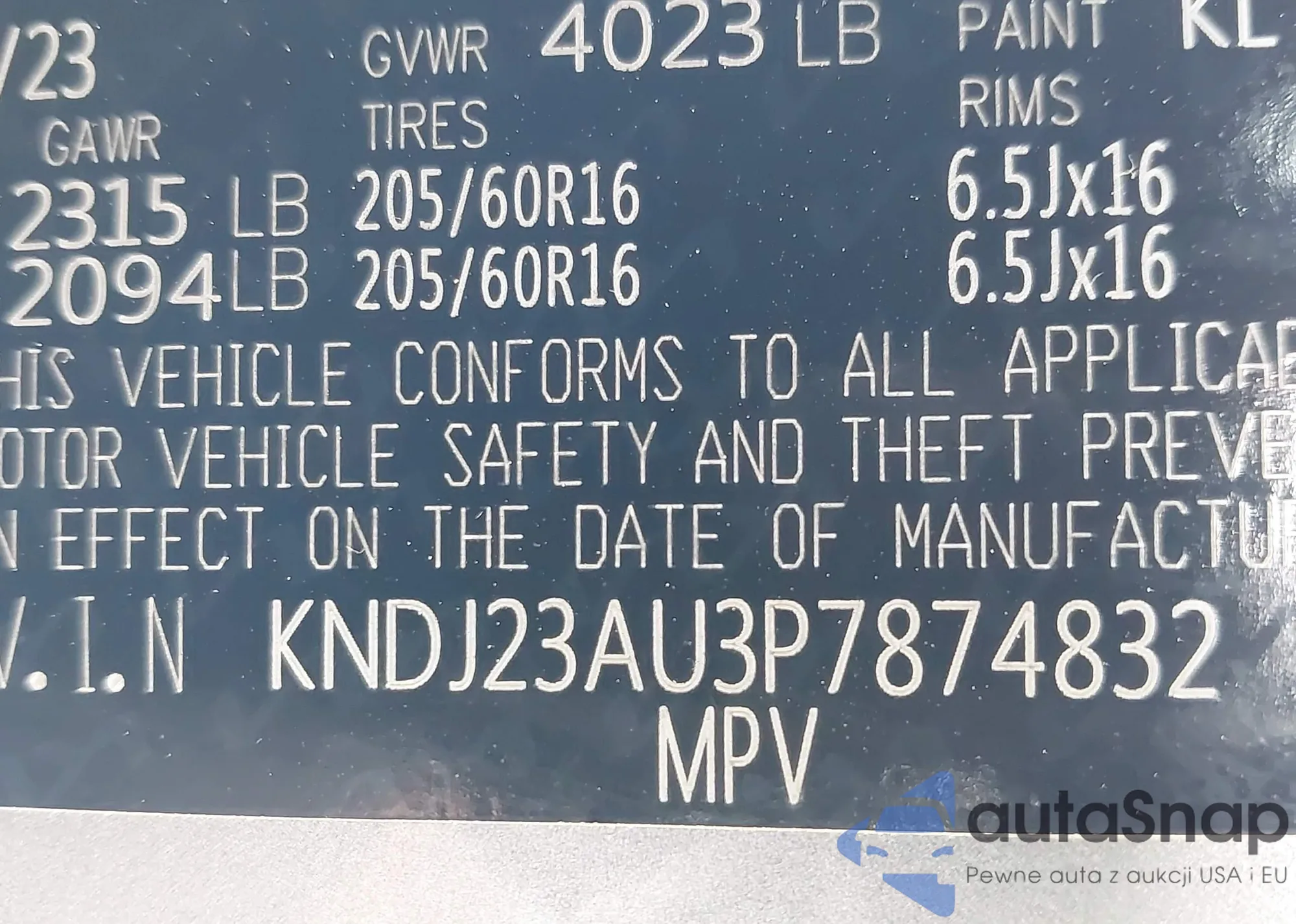 • VIN KNDJ23AU3P7874832
