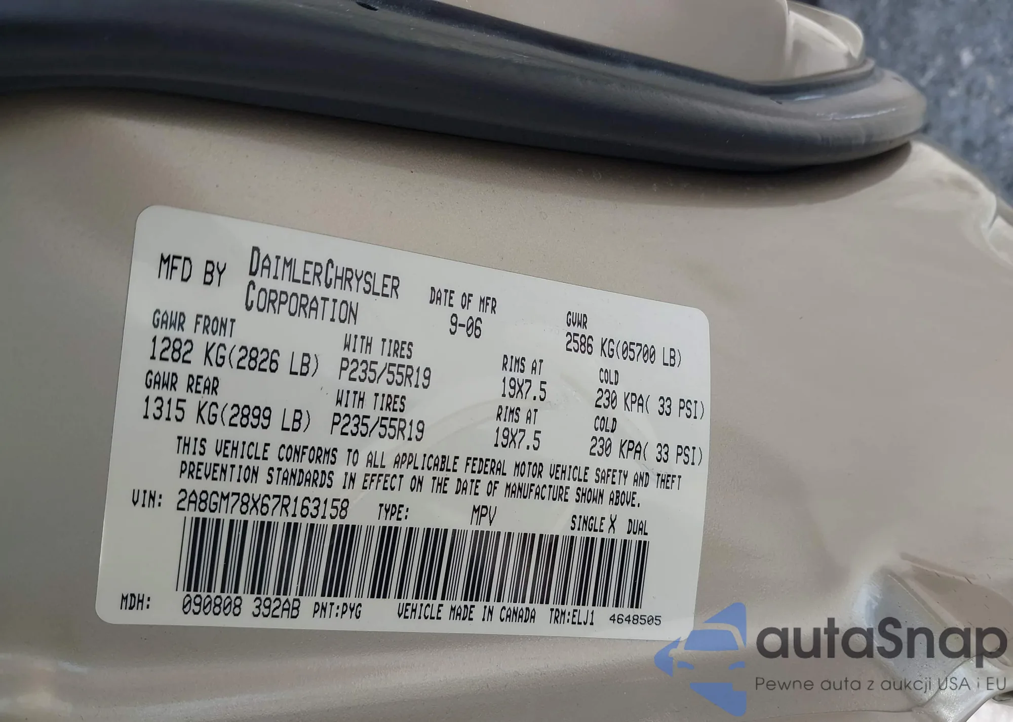 • VIN 2A8GM78X67R163158