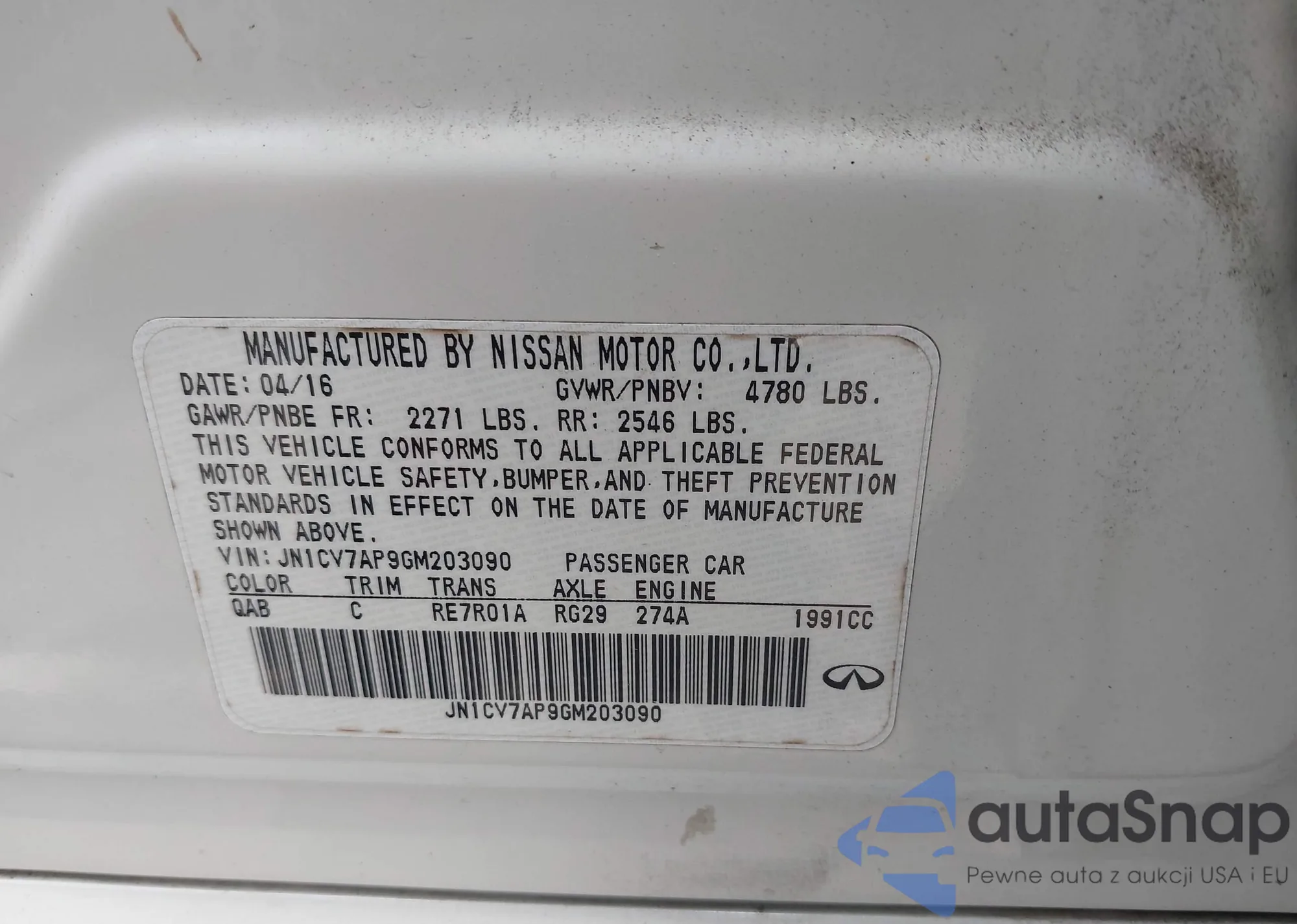 LOT: 42166637 VIN: 1N4BL4EV8MN314473