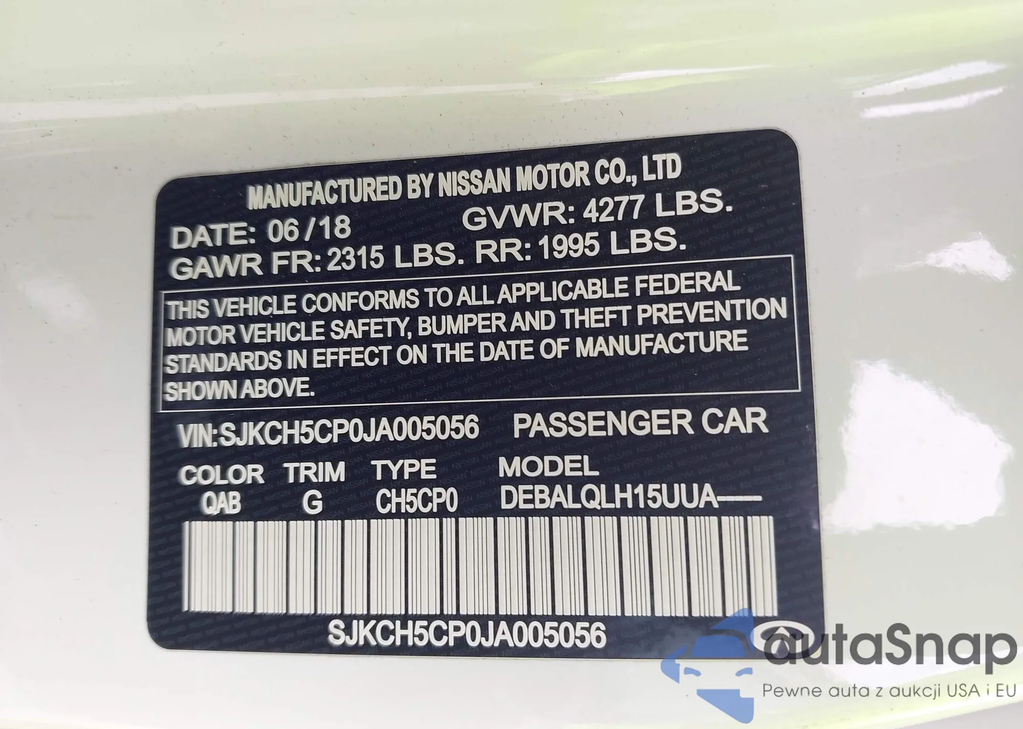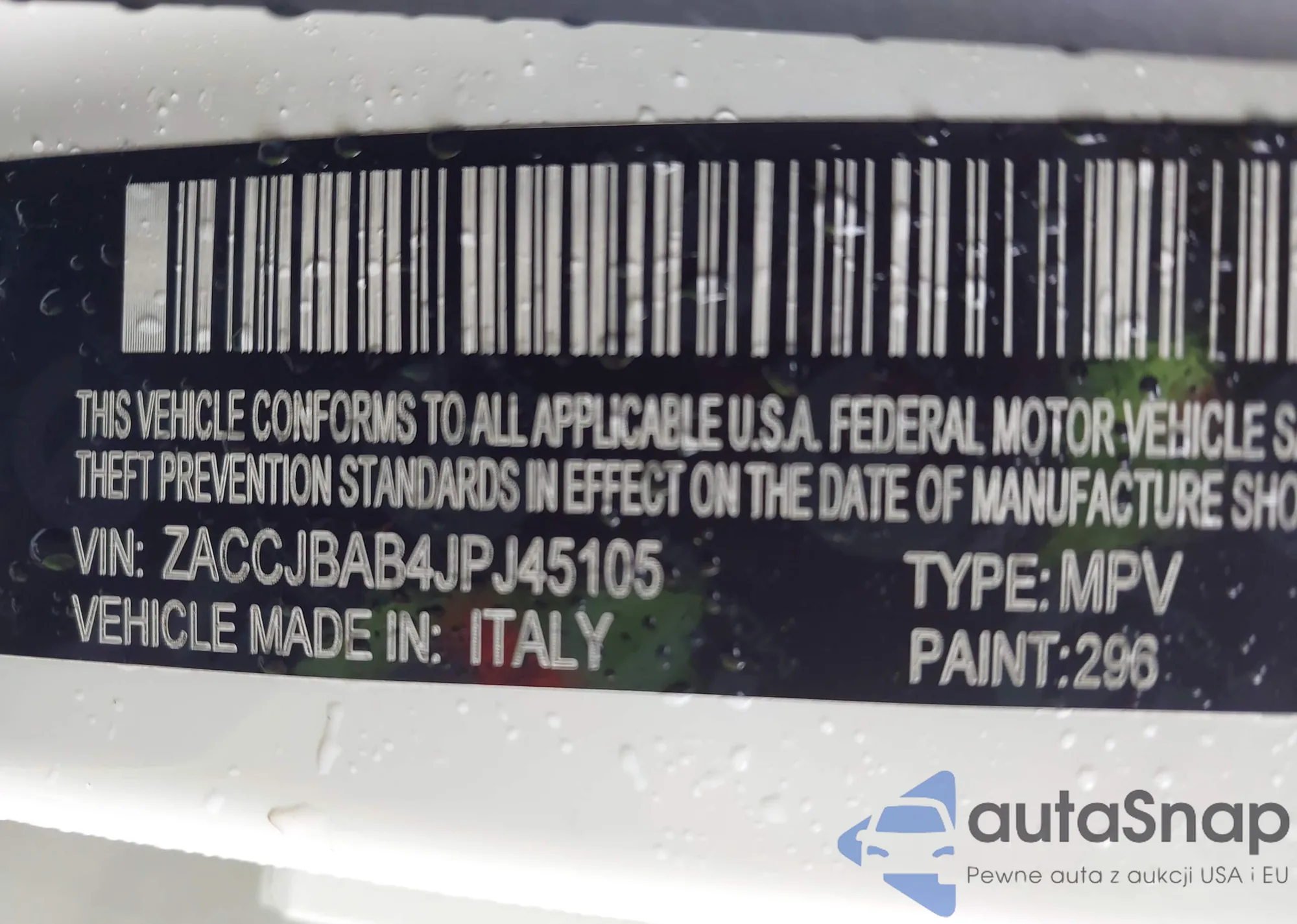 LOT: 42363899 VIN: ZACCJBAB4JPJ45105