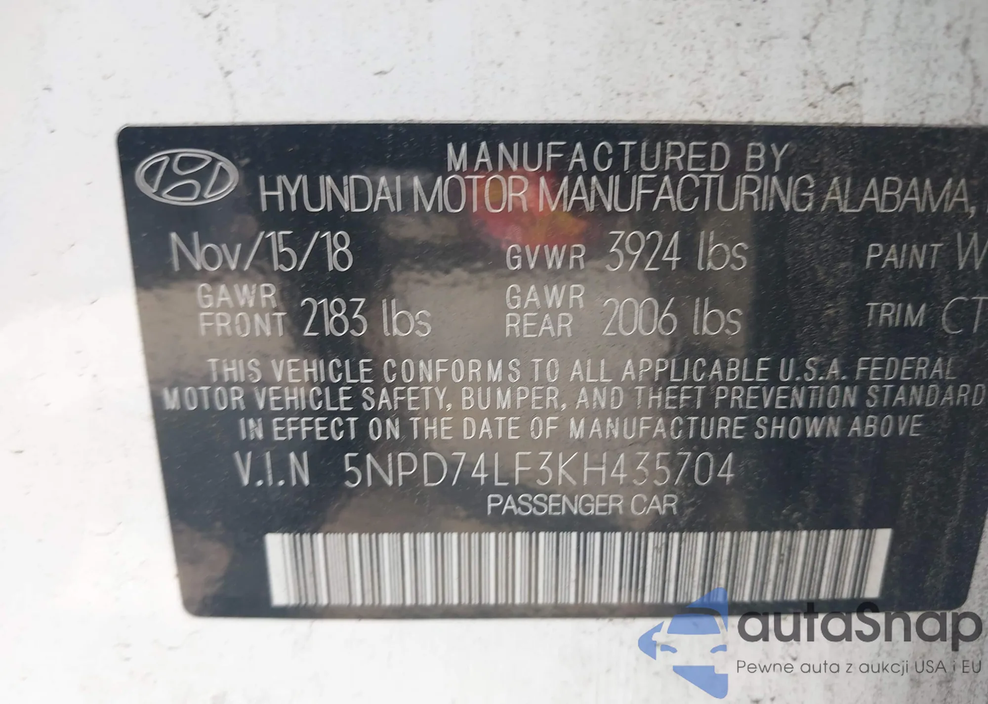 • VIN 5NPD74LF3KH435704