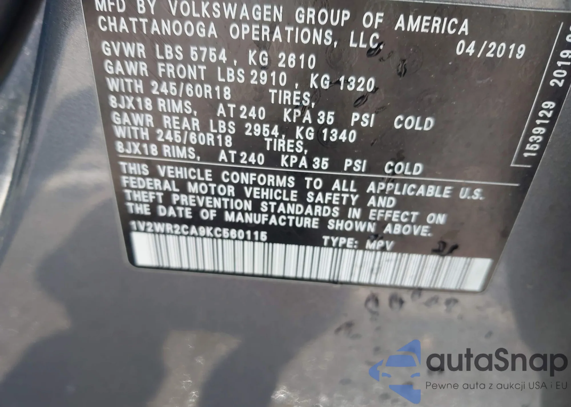 LOT: 42701550 VIN: 1G1ZC5ST9KF181062