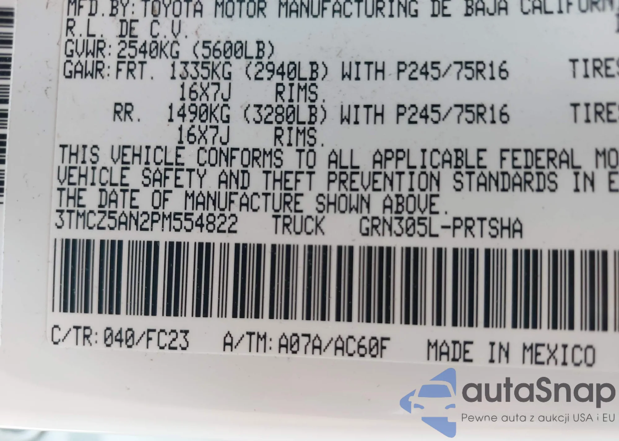• VIN 3TMCZ5AN2PM554822