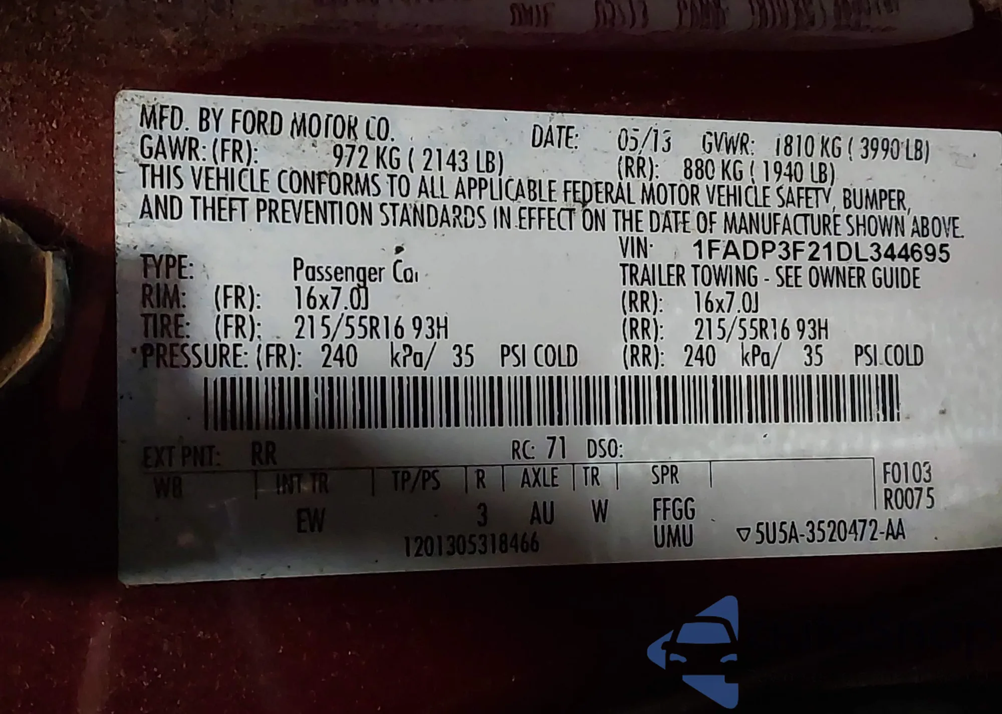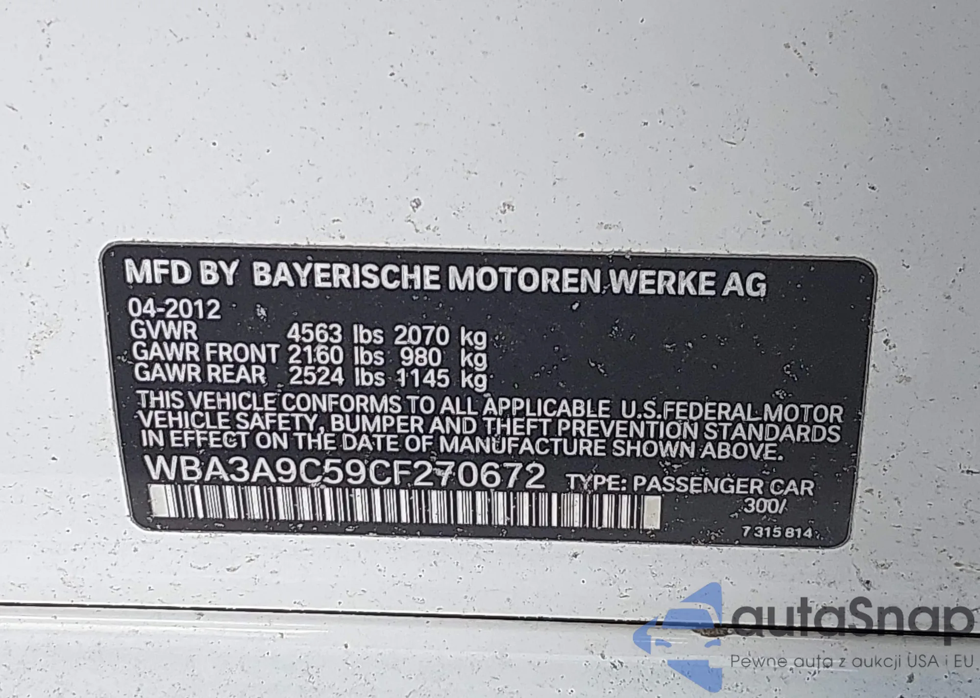 • VIN WBA3A9C59CF270672
