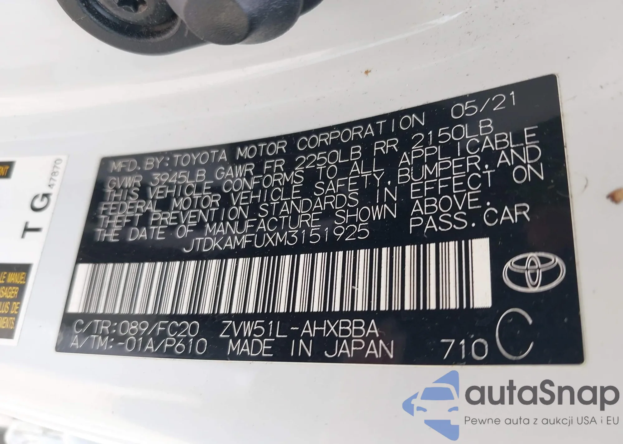 • VIN JTDKAMFUXM3151925
