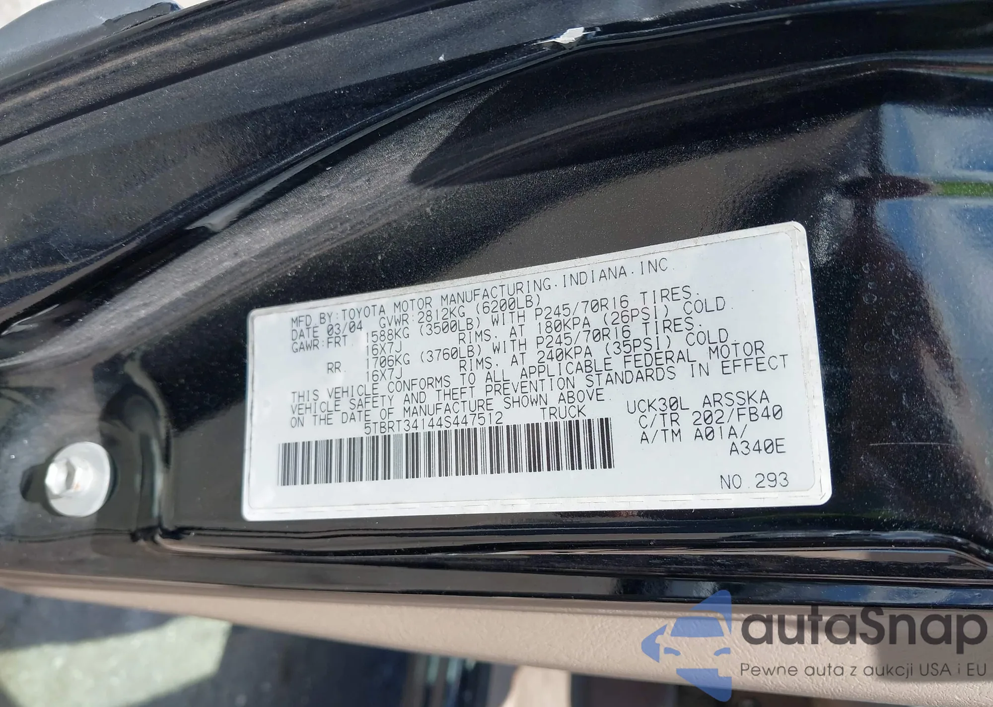 • VIN 5TBRT34144S447512