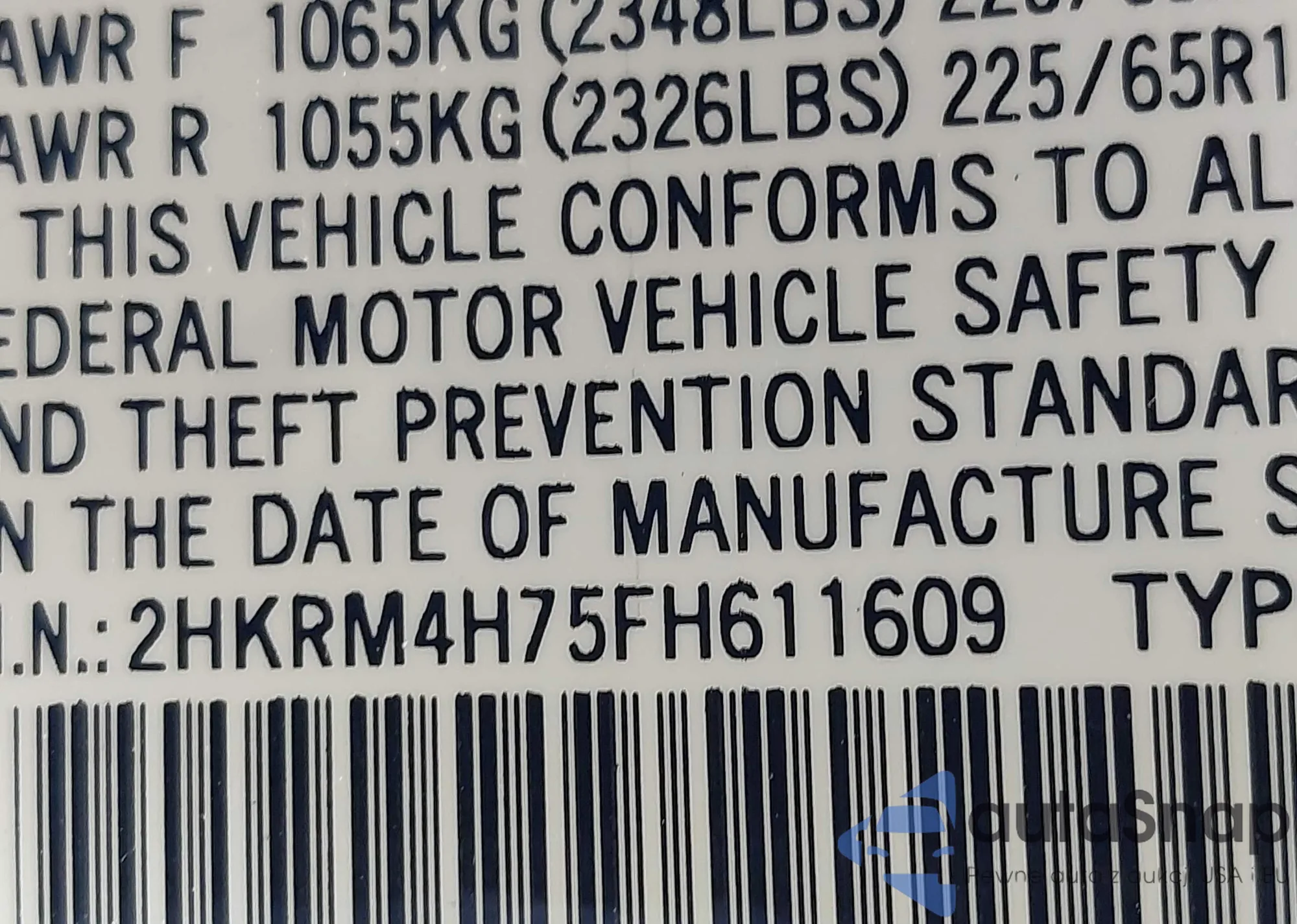 • VIN 2HKRM4H75FH611609