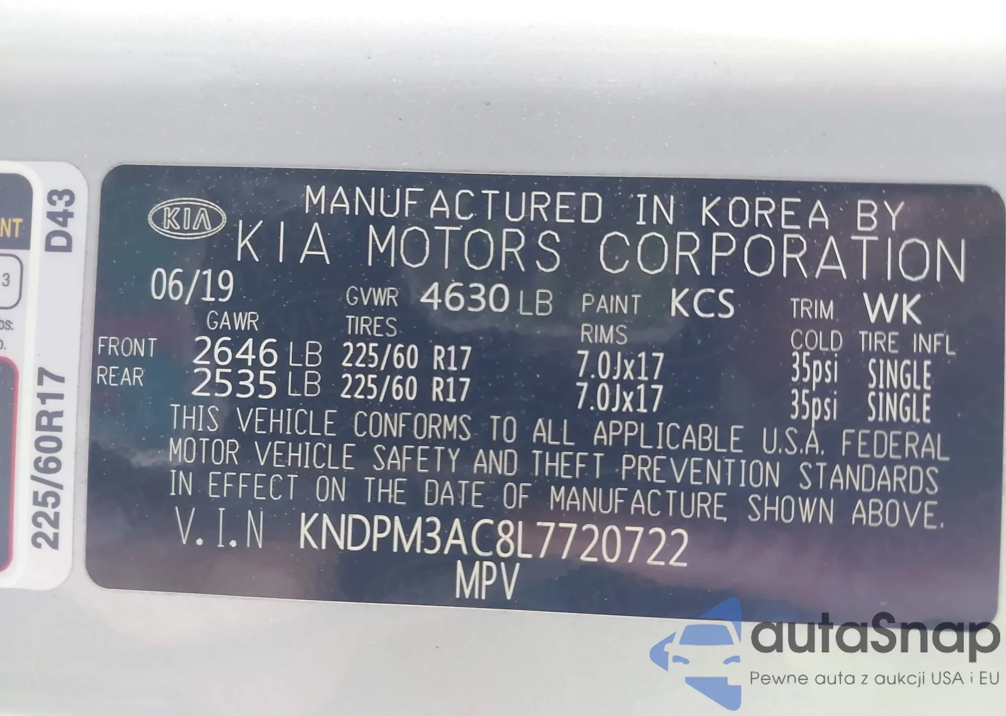 • VIN 5XYZU3LA5FG269017