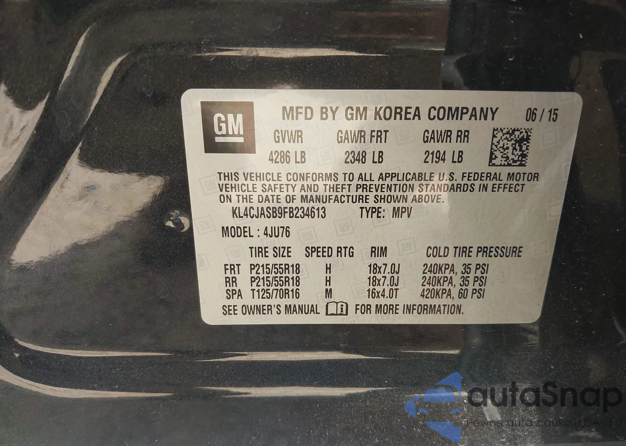 LOT: 43005722 VIN: 5XYZU3LA5FG269017