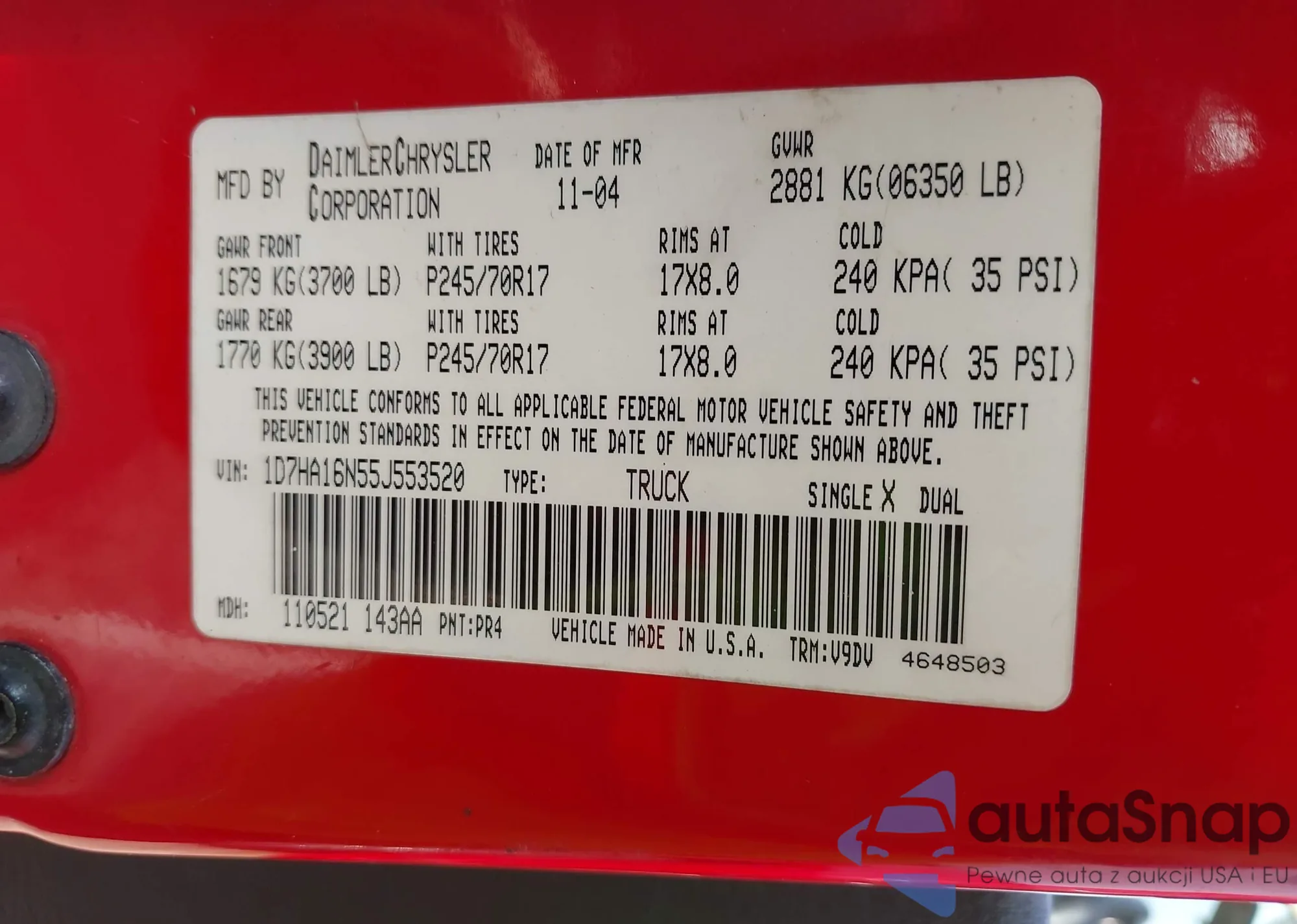 • VIN 1D7HA16N55J553520