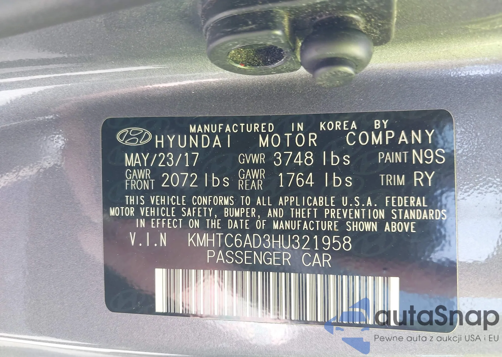 • VIN KMHTC6AD3HU321958