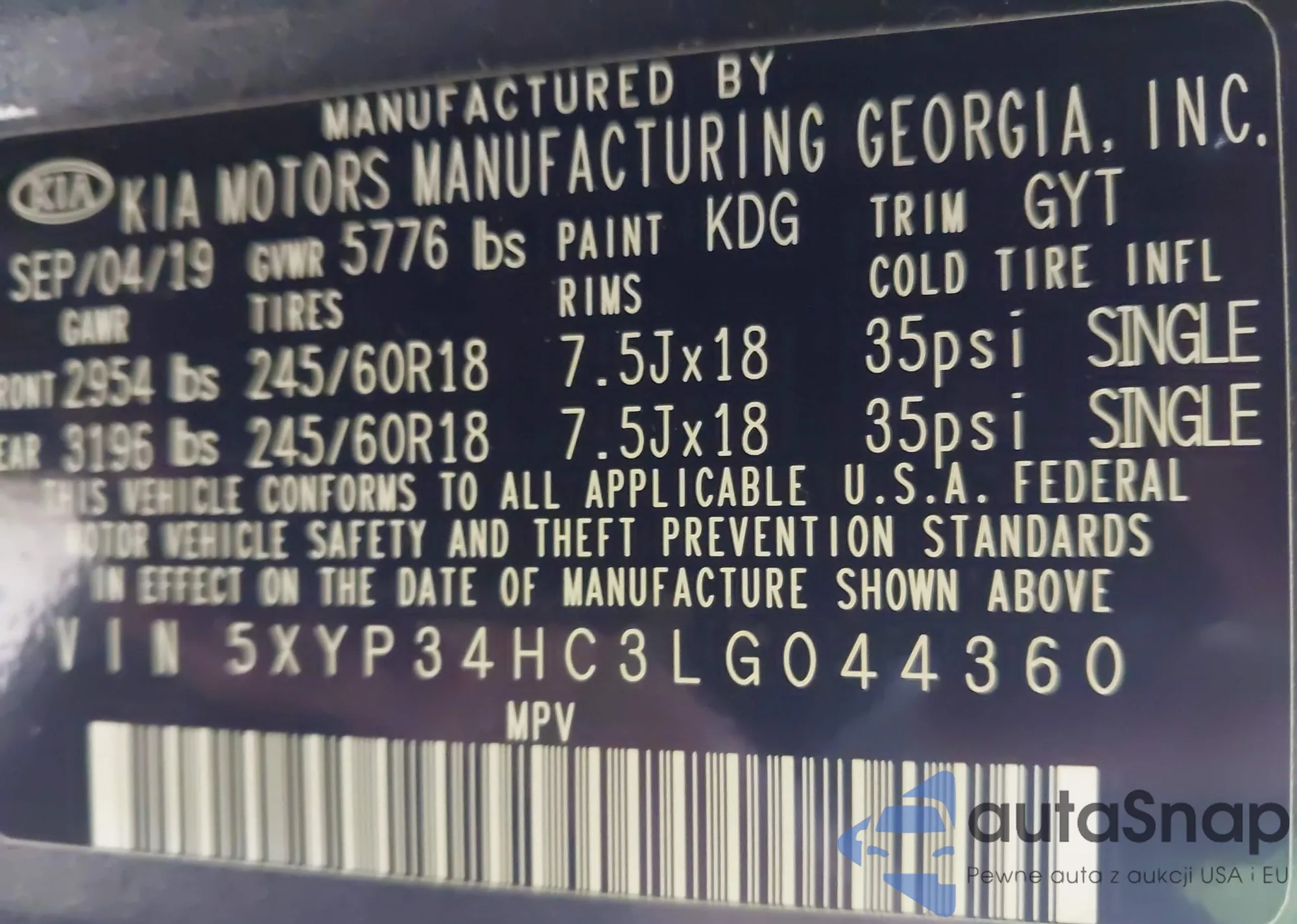 • VIN 5XYP34HC3LG044360