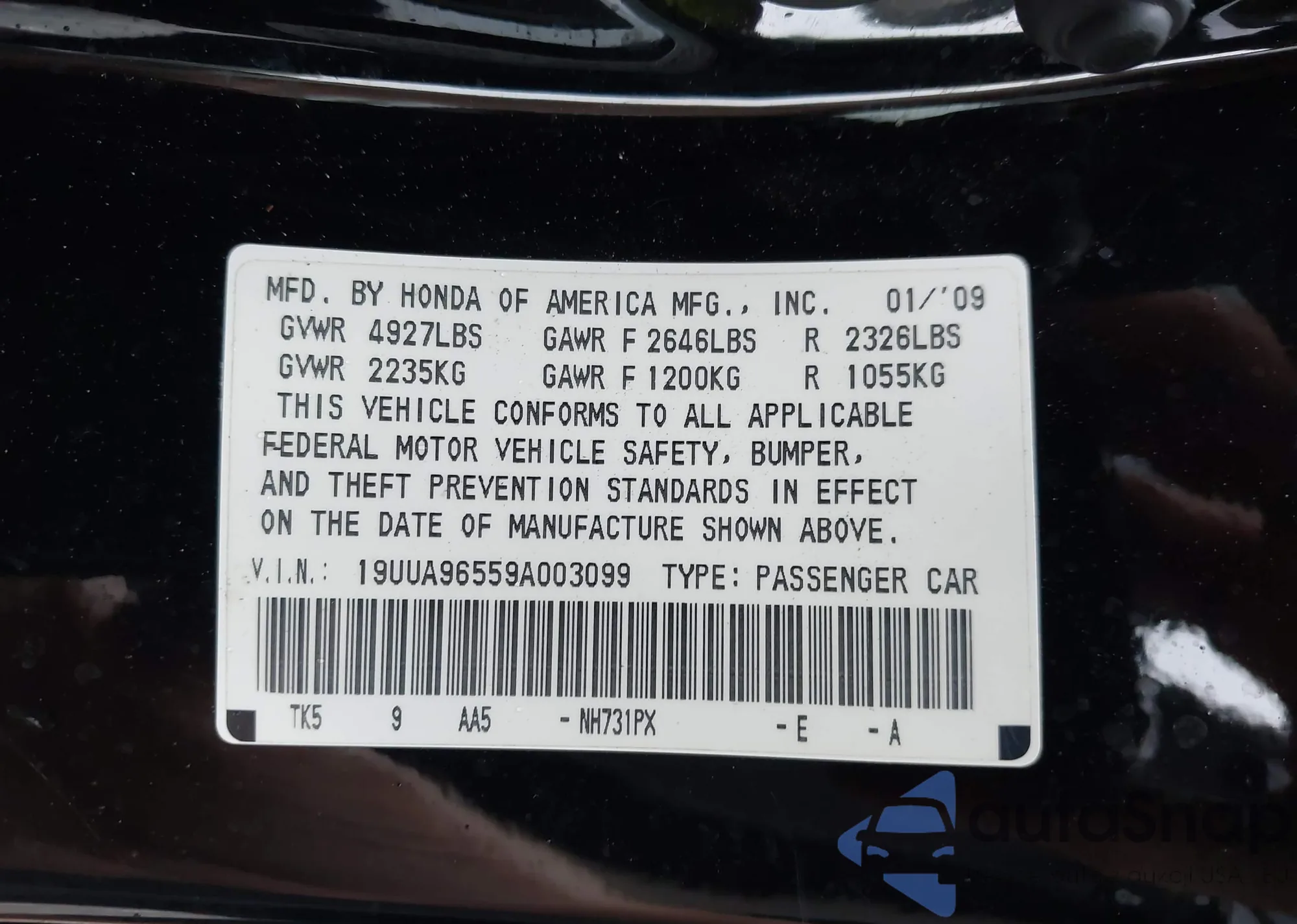 • VIN 19XFB2F53CE322579