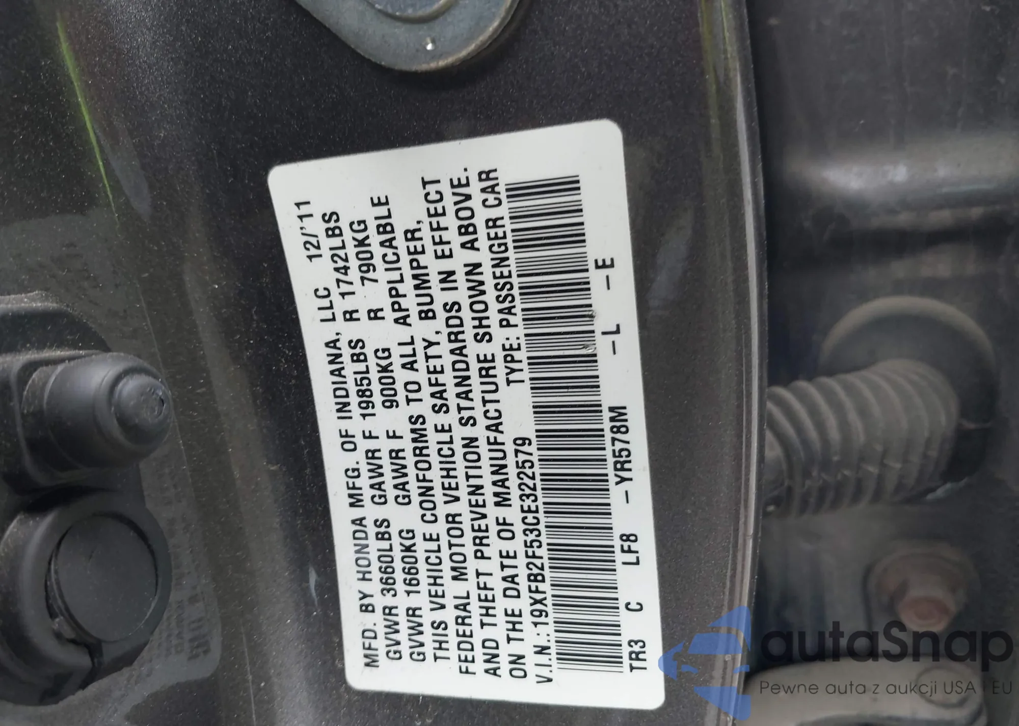 LOT: 42600485 VIN: 19XFB2F53CE322579