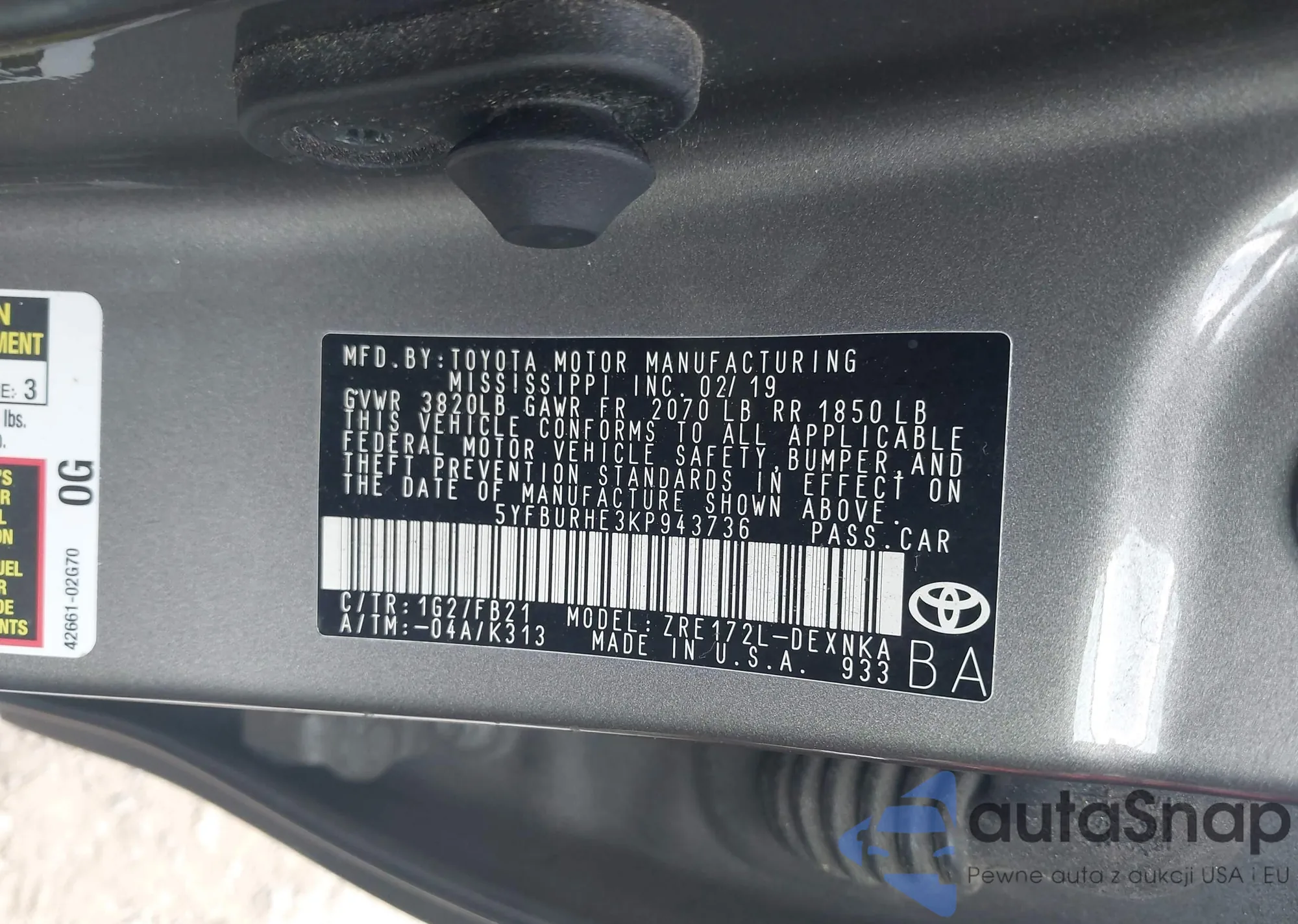 • VIN 5YFBURHE3KP943736