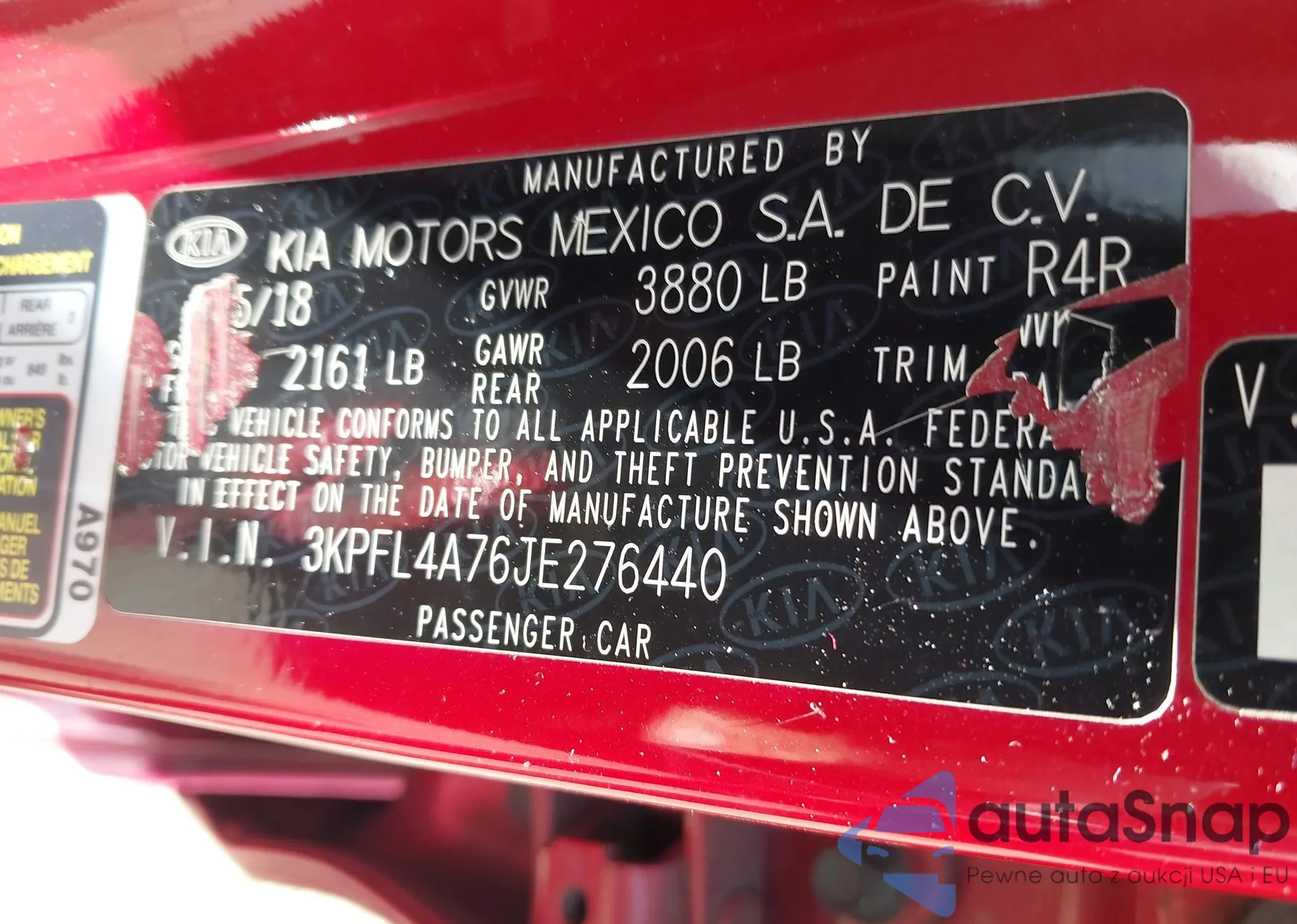 LOT: 42700674 VIN: 3KPFL4A76JE276440