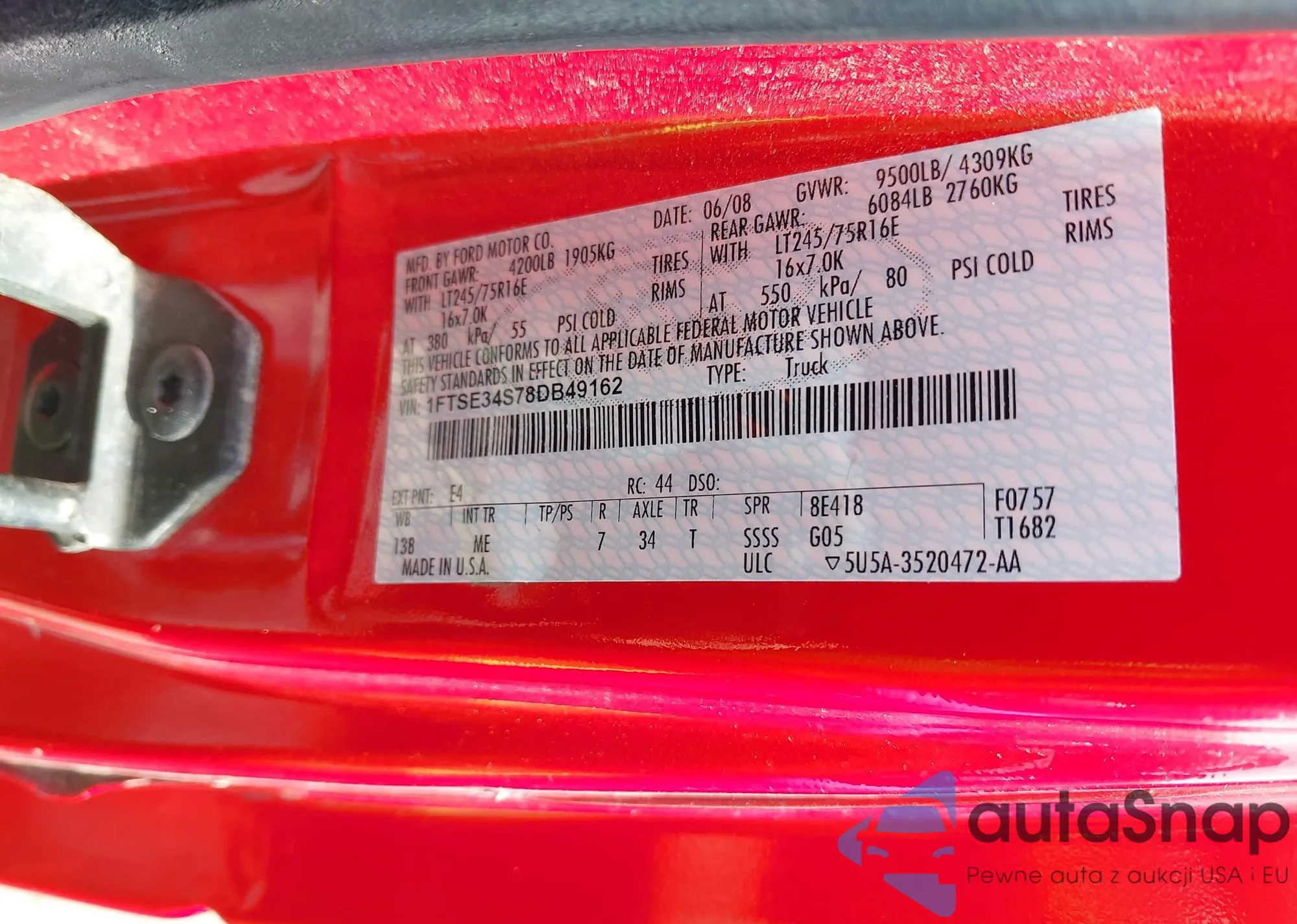 LOT: 42869982 VIN: 1FTSE34S78DB49162
