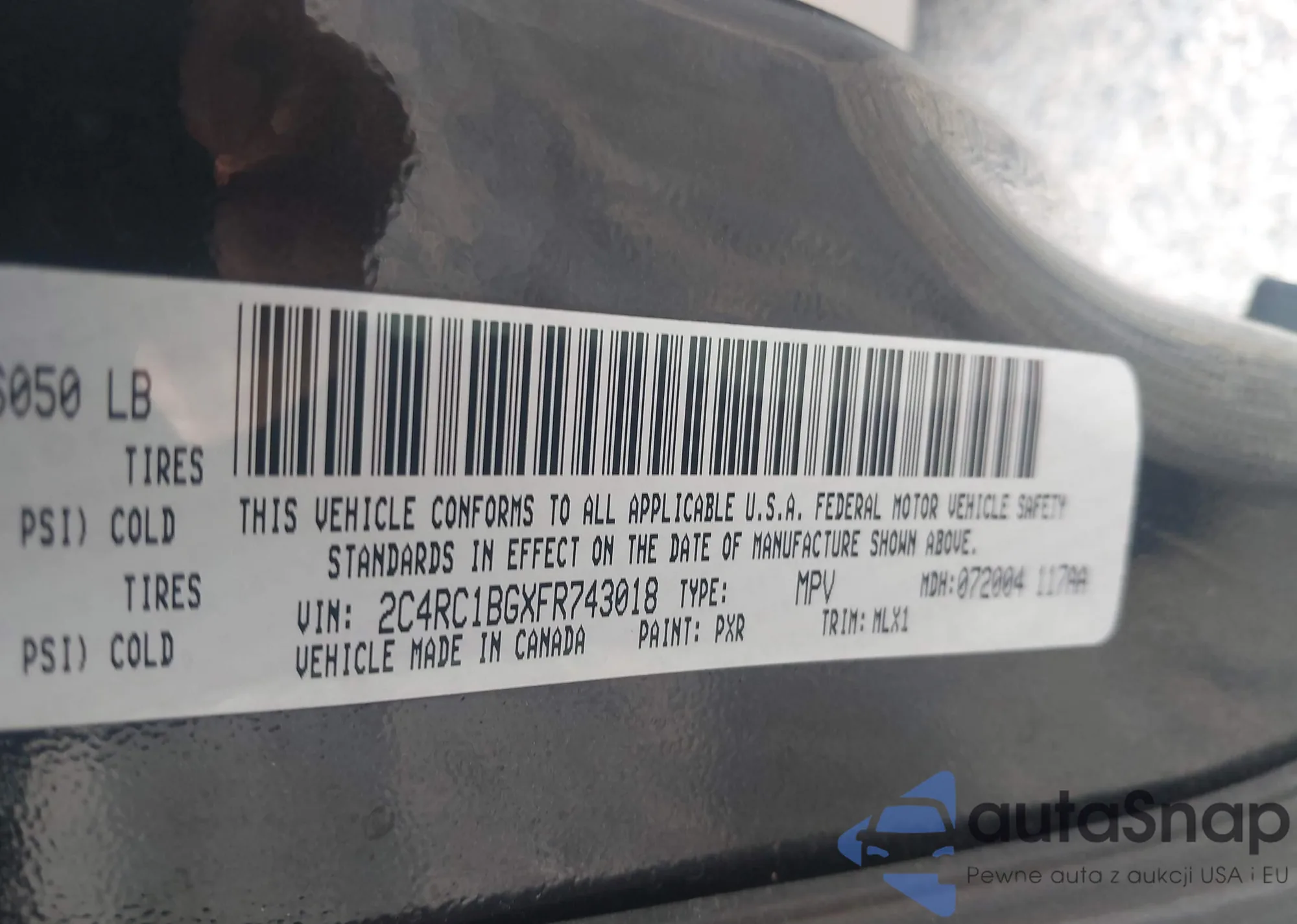 • VIN 2C4RC1BGXFR743018