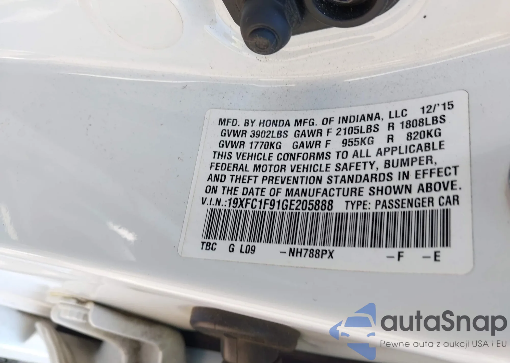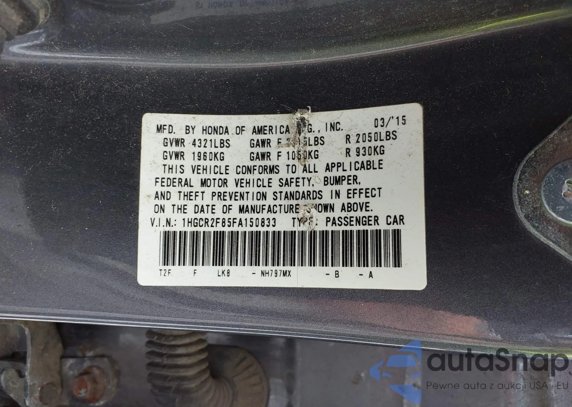 LOT: 42907568 VIN: 1HGCR2F85FA150833