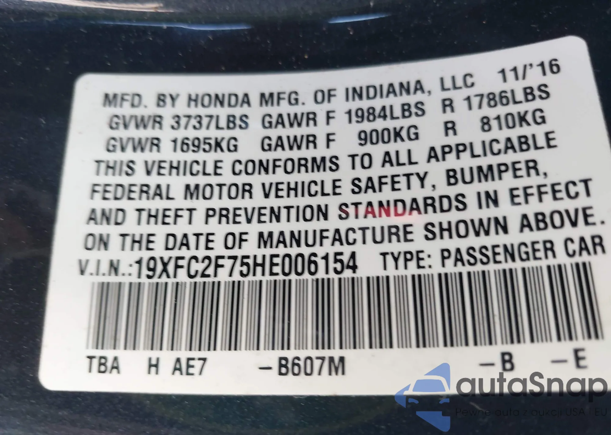 • VIN 19XFC2F75HE006154