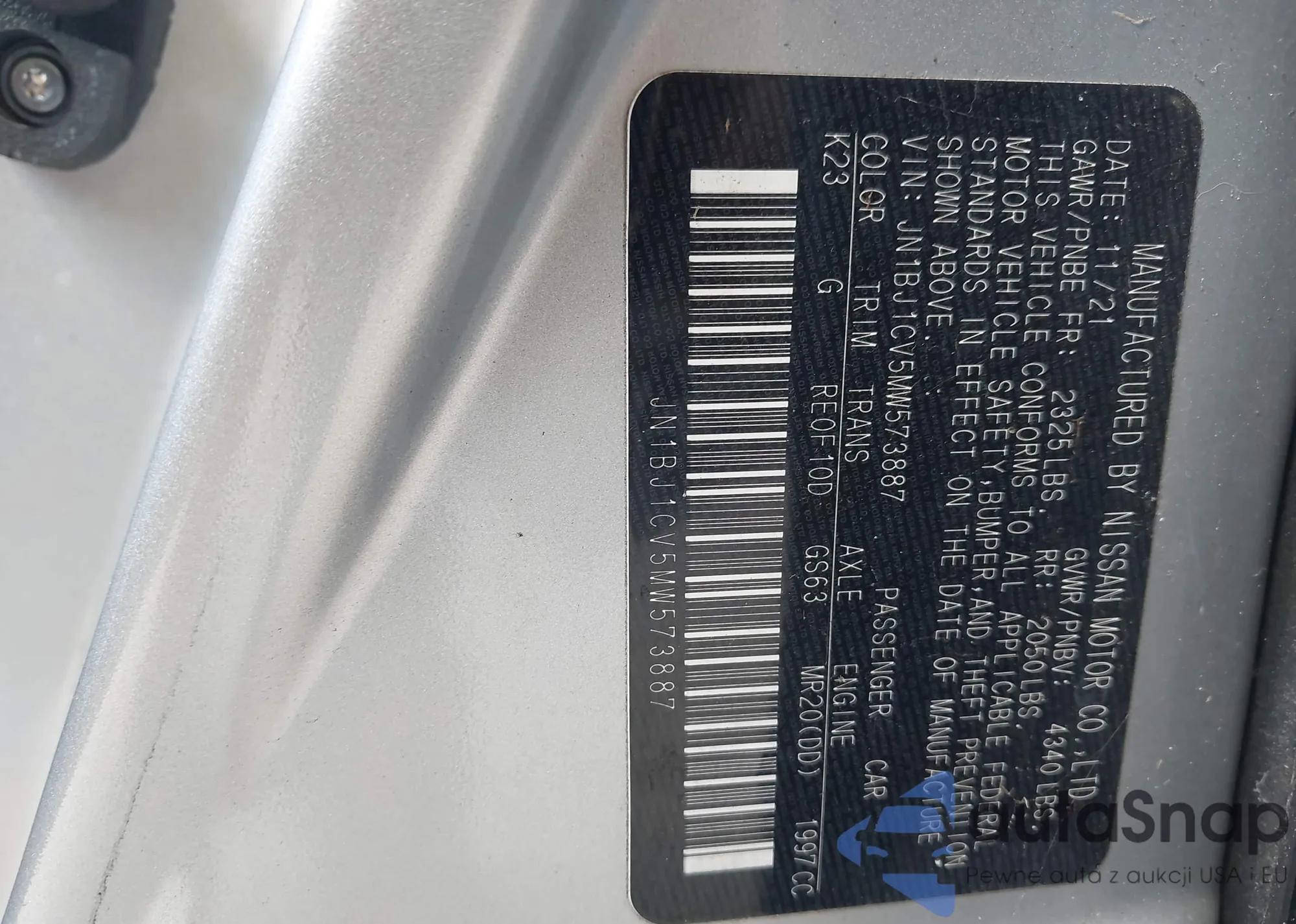 LOT: 42930734 VIN: JN1BJ1CV5MW573887