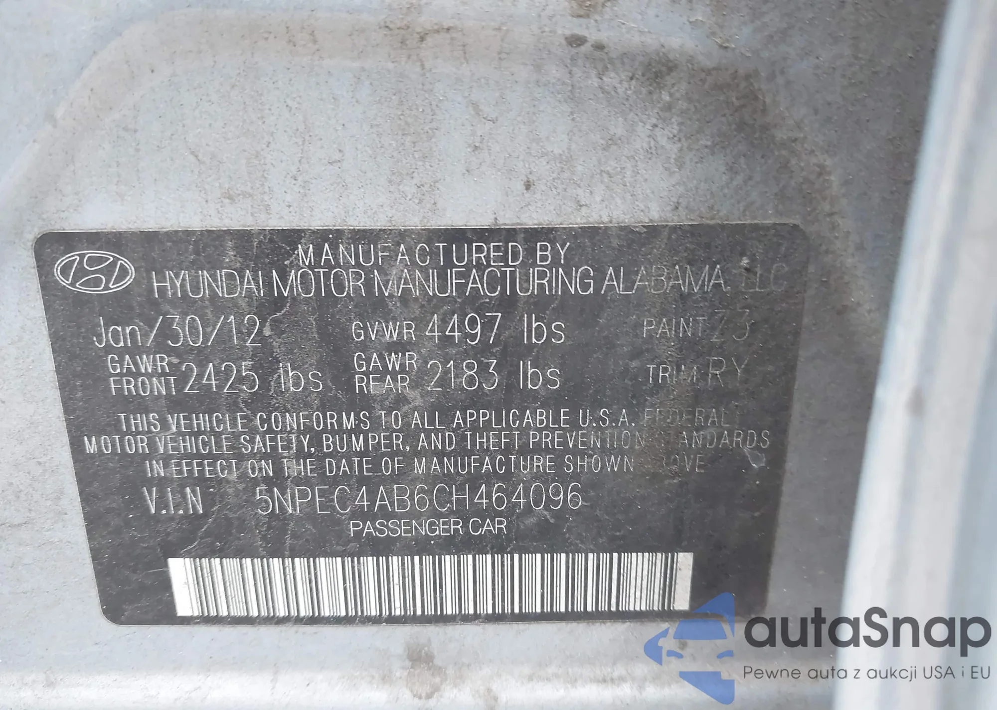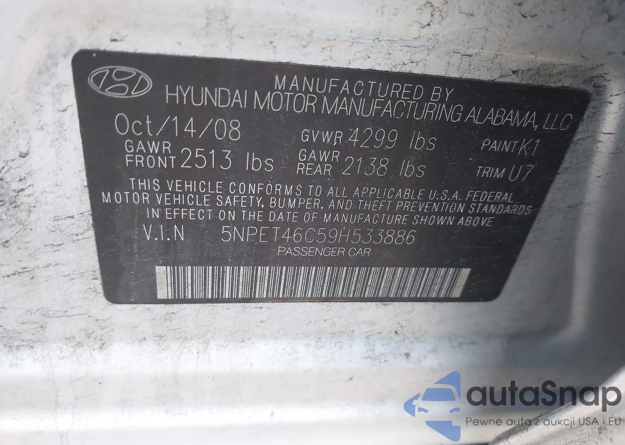 LOT: 42944186 VIN: 5NPET46C59H533886