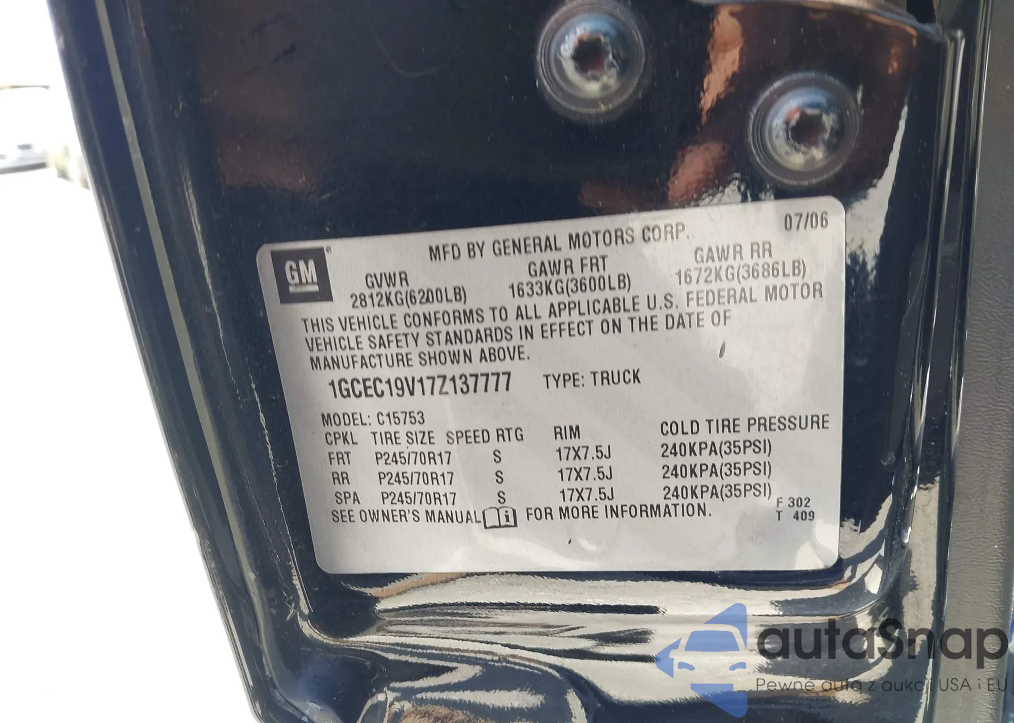 • VIN 1GCEC19V17Z137777