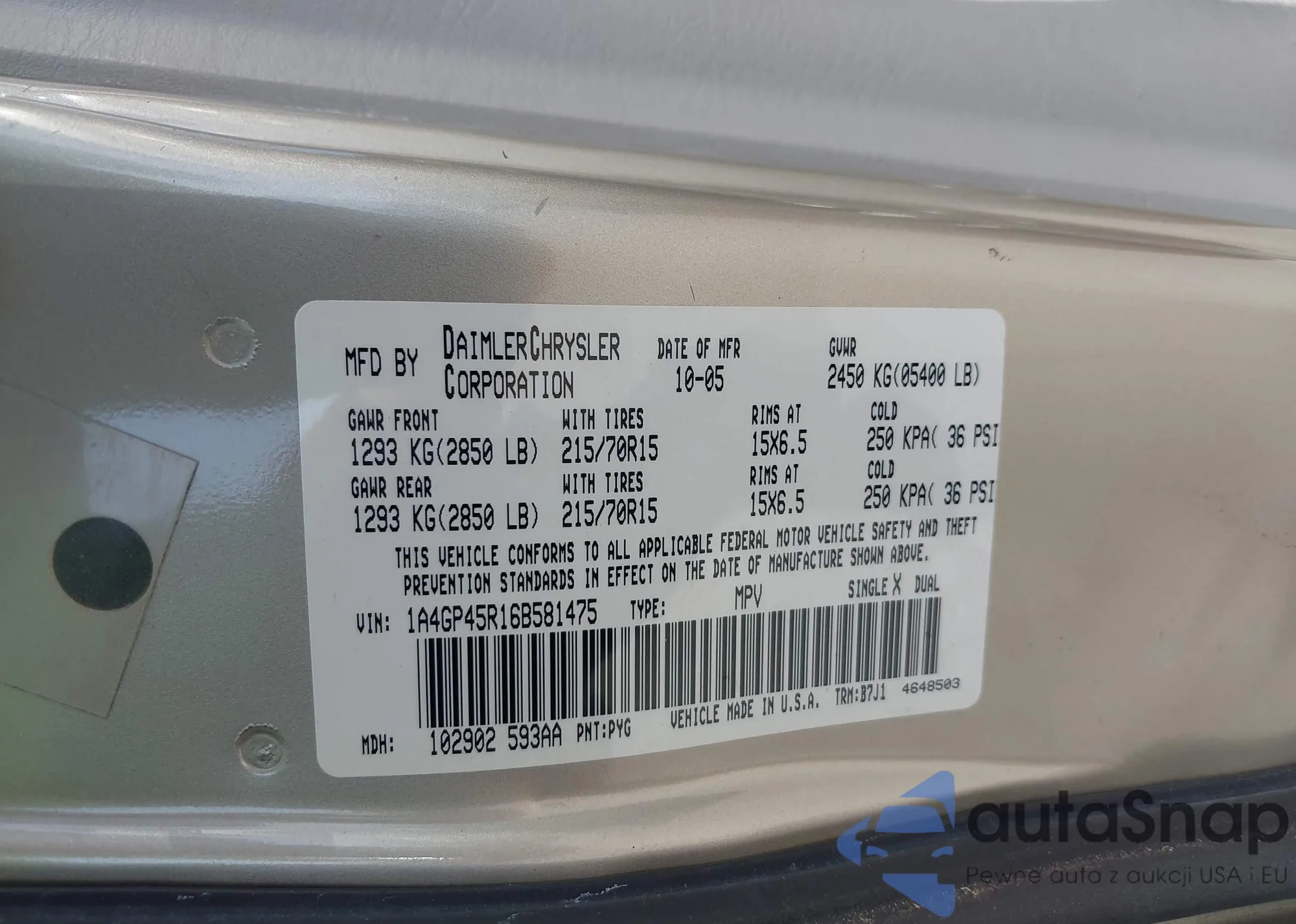 LOT: 42944553 VIN: 1A4GP45R16B581475