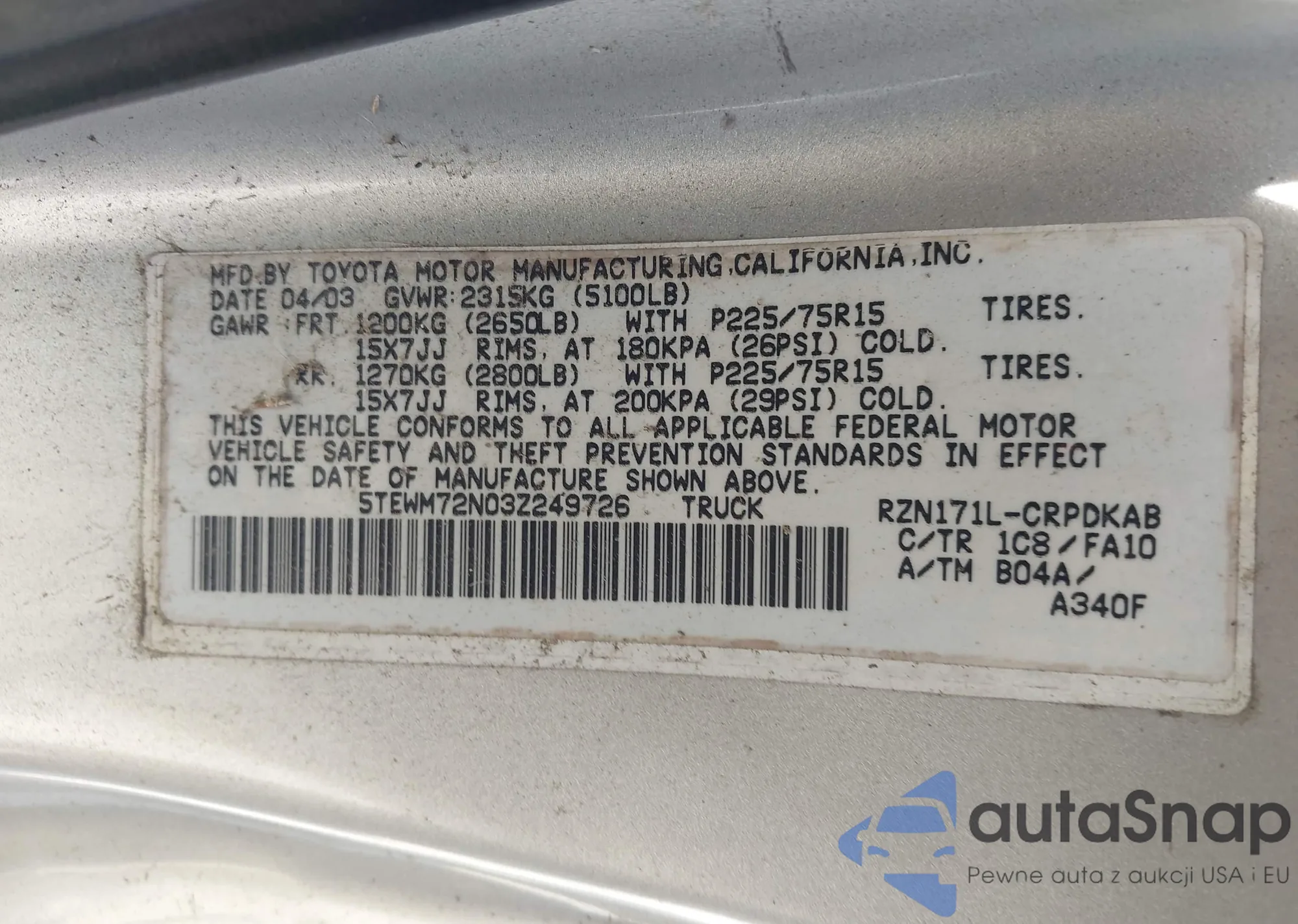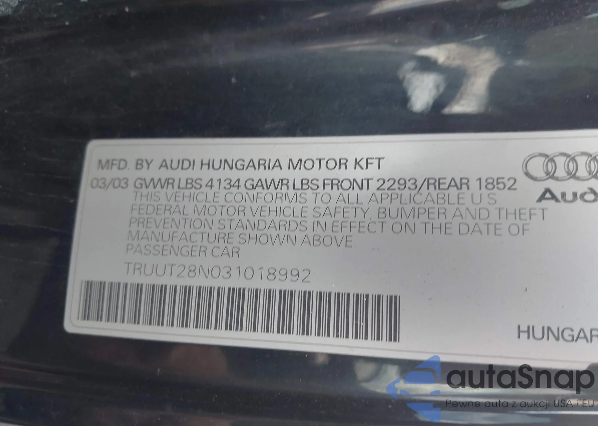 • VIN TRUUT28N031018992